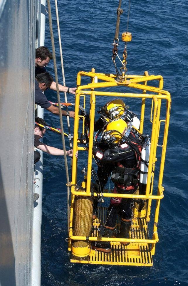 – Los buzos pueden realizar la inmersión mediante una guindola de intervención directa desde superficie, permitiéndole inmersión más rápida a una profundidad de hasta 90 metros.