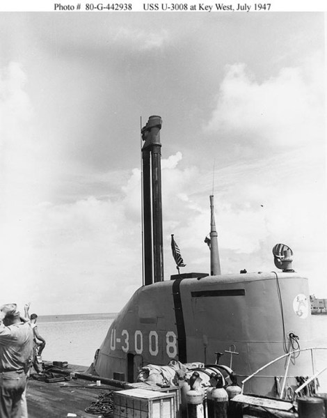 Ilustración 3: El U-3008 fue uno de los Tipo XXI puestos en servicio por la US Navy y estudidiados en profundidad. Vía Wikipedia.