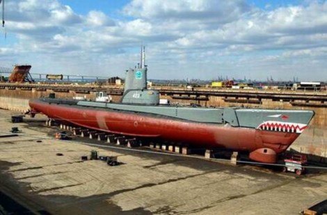 Ilustración 9: el submarino museo USS Torsk durante una varada de mantenimiento en 2011, mostrando su BQR-2 bajo la proa (http://usstorsk.org/photoalbum/2011ddk/2011ddk000.htm)