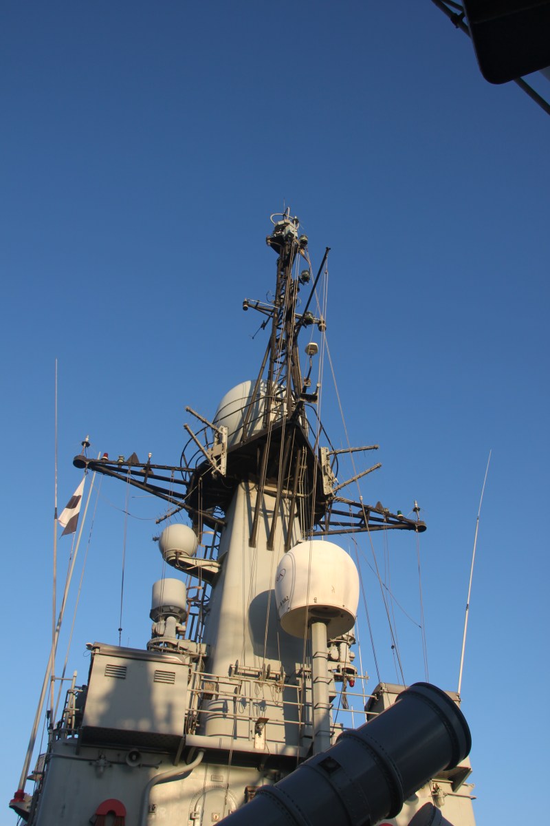 IMG_7112 Publicado julio 18, 2016 en 3168 × 4752 en Sistemas de Guerra Electrónica en la Armada Española ← Anterior Siguiente → Mastil de la corbeta/patrullero de altura P-78 Cazadora mostrando el receptor ESM ELNATH en el tope y las dos antenas emisoras del equipo CANOPUS en el lado izquierdo. La gran antena en el centrol es un enlace satélte (Gorka L Martínez Mezo)