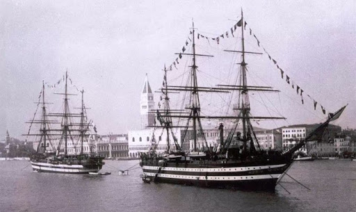 Así nacieron los buques escuela a vela Cristoforo Colombo y Amerigo Vespucci, que aparejados de fragatas y con sus cascos pintados elegantemente de negro brillante con dos franjas blancas para simular dos hileras de cañones al estilo de los buques de combate del siglo XIX, fueron los protagonistas de la formación de cadetes navales italianos que más tarde serían los comandantes de los acorazados, cruceros, destructores, submarinos y lanchas X MAS que lucharían en la Segunda Guerra Mundial, combatiendo Italia primero en el bando del Eje y luego cambiando al bando de los Aliados.