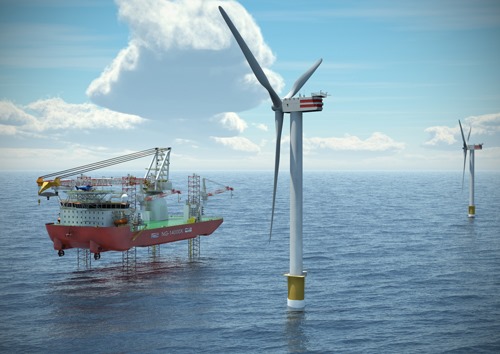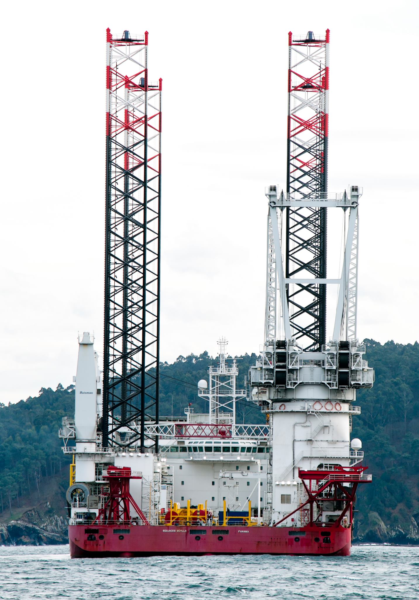 En estos días permanece fondeado en la coruñesa ría de Ares el buque offshore más grande del mundo destinado a la instalación de parques eólicos marinos.