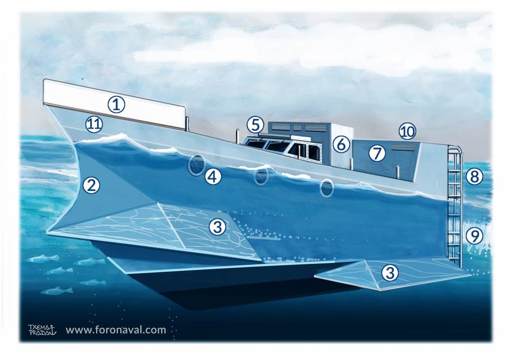 El ingenio capturado resulta bastante sorprendente. Para su fabricación se aprovechaba como base una “narcolancha” sobre cuya quilla se fue montando una superestructura de contrachapado y fibra de vidrio, a modo de cuadernas con refuerzos, que proporcionarían la necesaria resistencia estructural a la presión del agua durante la navegación, obteniendo en total unas dimensiones de nueve metros de eslora, tres de calado y tres de manga, lo que ya nos sugiere que, a diferencia del primer “narcosubmarino” capturado en Galicia, no estaba pensado para realizar largas travesías transatlánticas por su reducido tamaño. Una posible ventaja de la fibra de vidrio como material de construcción sería su bajo nivel de detección para el radar, lo que le podría proporcionar cierta capacidad “furtiva” o “Stealth”.