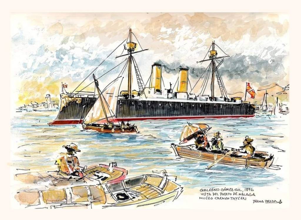 Para quien esto escribe, me animé a redactar el presente artículo a raíz de una casualidad, cuando admiraba un cuadro del pintor malagueño Guillermo Gómez Gil expuesto en el Museo Carmen Thyssen de Malaga, donde retrataba un bonito crucero fondeado en la dársena del Puerto de Málaga, aunque en la placa de la pared que acompañaba dicho cuadro no figuraba su identidad, así que tras sacarle una foto tuve que buscar el nombre a través de Google, donde pude encontrar que el buque pintado por Gómez Gil era el malogrado crucero Reina Regente. Casualmente ese mismo día pude dar un paseo por los muelles del Puerto de Málaga y fotografiar al impresionante superyate Octopus, donde lleva ya varios meses atracado a la espera de ser vendido tras la muerte de su dueño, el increible Paul Allen. En ese momento no pensé que ambos buques pudieran a estar relacionados, hasta que un compañero de la asociación Foro Naval y un oficial de la Armada Española me pusieron sobre la pista…