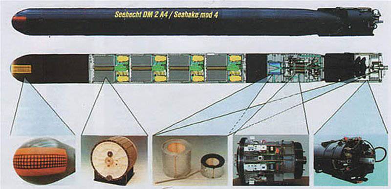 El torpedo DM2A4 es un arma activa/pasiva multi propósito. Su propulsión es eléctrica con hélices de diseño avanzado para disminuir su firma sonora pero capaz de propulsar el arma a más de 50 nudos de velocidad con un alcance superior a los 50 km con cuatro baterías de AgZn de alta densidad. Su sistema de guía posee un sistema hidrofónico conformado de gran apertura con una elevada cobertura vertical (+/- 24 grados) y horizontal (+/- 100 grados), dotado de gran capacidad de procesamiento de señales y capacidad contra contramedidas acústicas. Dispone además de un elemento “wake homing” para atacar blancos de superficie. Su sistema de filoguiado por fibra óptica de alta capacidad permite compartir datos con la nave lanzadora de forma que esta puede usar el sonar del torpedo para “ver” a través de él afinando su trayectoria y su resistencia a contramedidas. Su construcción modular le permite un amplio número de configuraciones, pudiendo dotarse con dos, tres o cuatro módulos de baterías. El sistema de combate permite su lanzamiento en salvas de hasta seis unidades de forma simultánea. Su carga de guerra es de 260 kg de explosivo insensible TR-8870 de tipo PBX y dispone de espoletas magnética y de contacto. Atlas Electronik ofrece incluso la capacidad de utilizar el torpedo como vehículo submarino remoto controlado a través de su cable de fibra óptica, pudiendo usar el submarino la información captada por los sensores del torpedo.