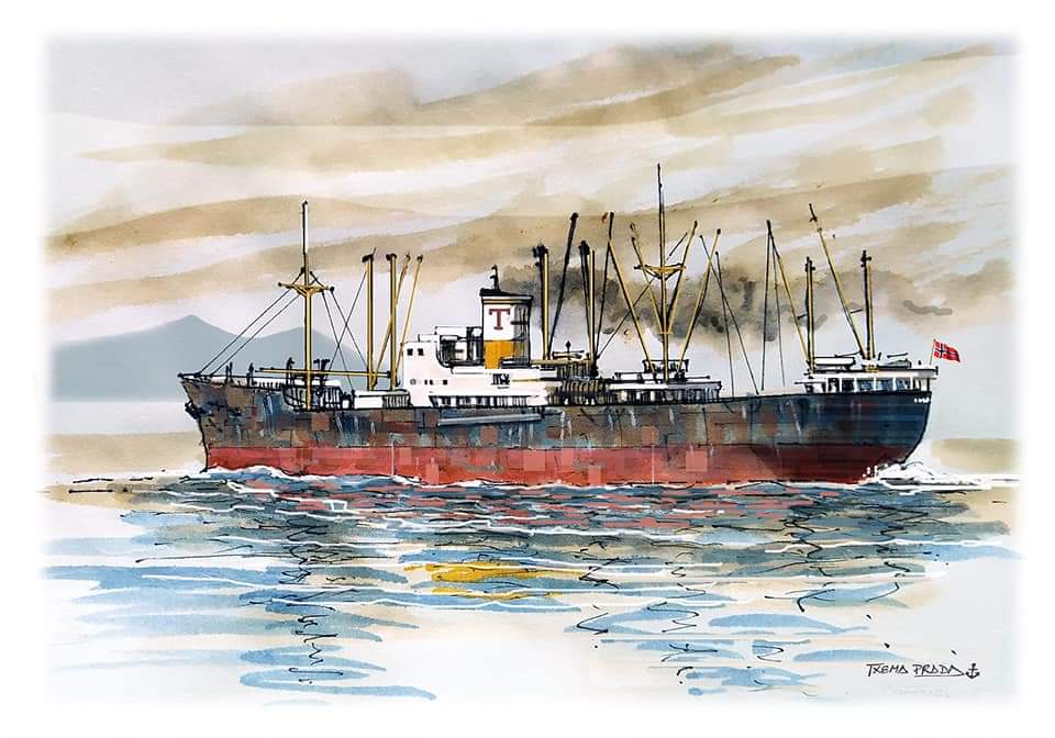 El buque mercante noruego Rytterholm dibujado por el artista gráfico Txema Prada para Foro Naval