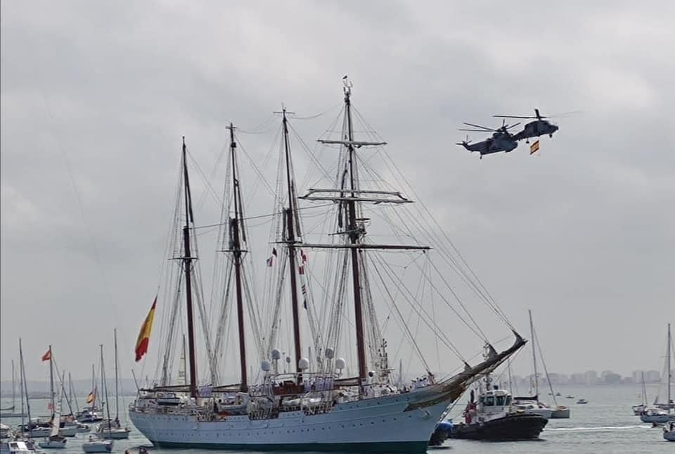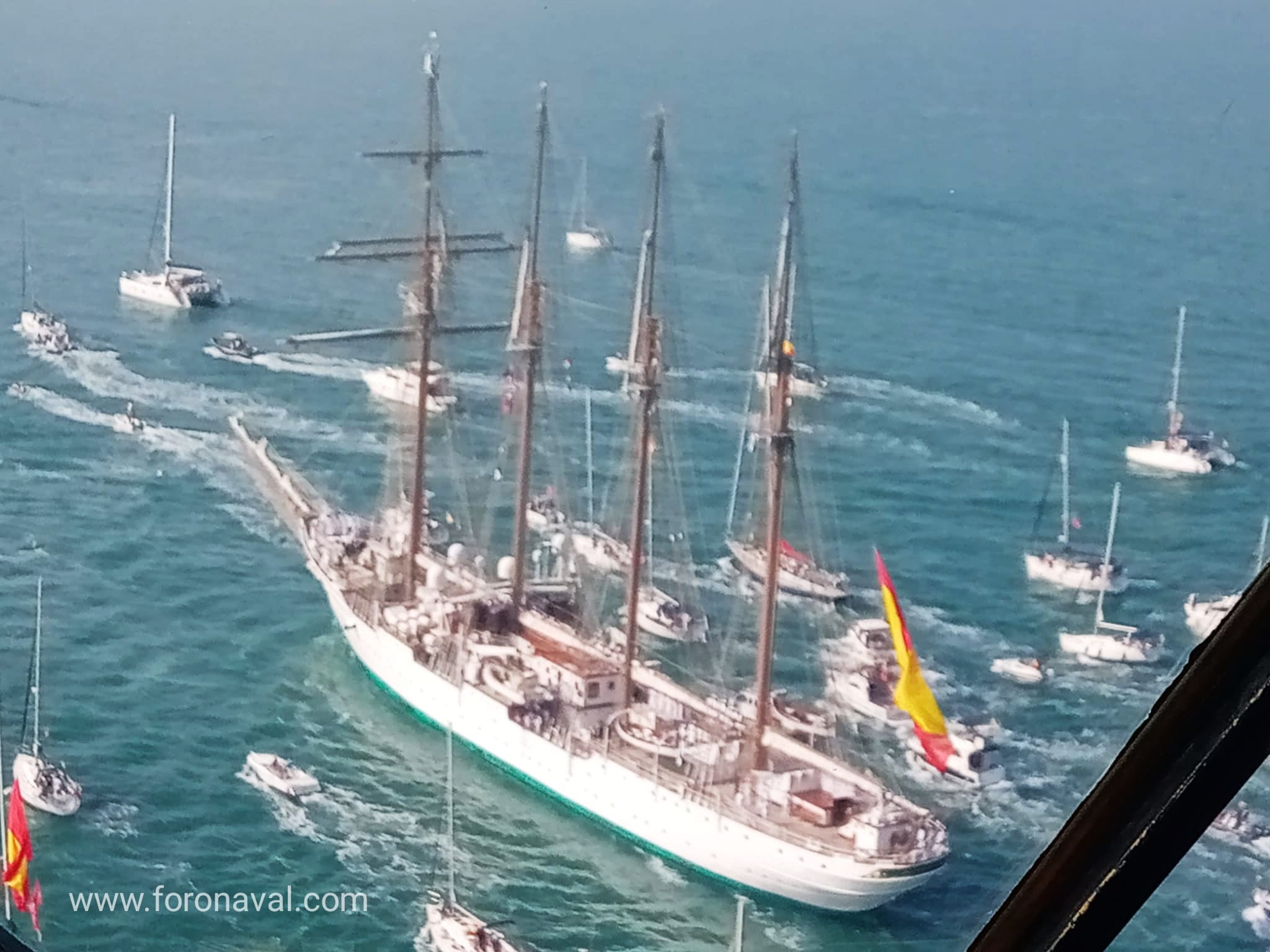En la Costa del Sol nunca vemos barcos de la Armada, y mucho menos el Elcano, navegar por nuestras costas. La última vez que vimos uno fue el Príncipe y la Navarra, a varias millas, cuando se hizo una demostración aeronaval, y la gente, locales, visitantes y turistas, flipó.