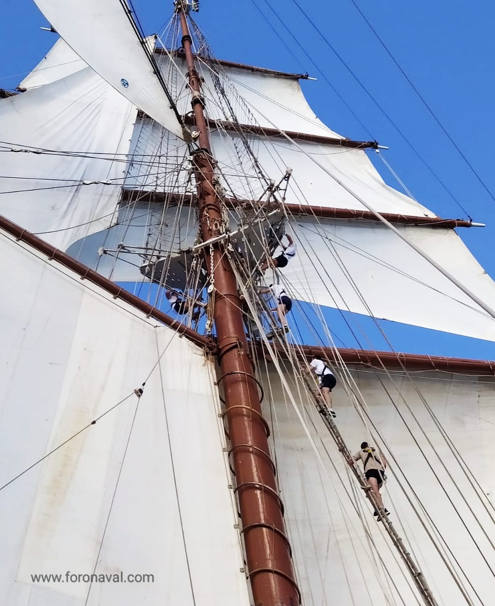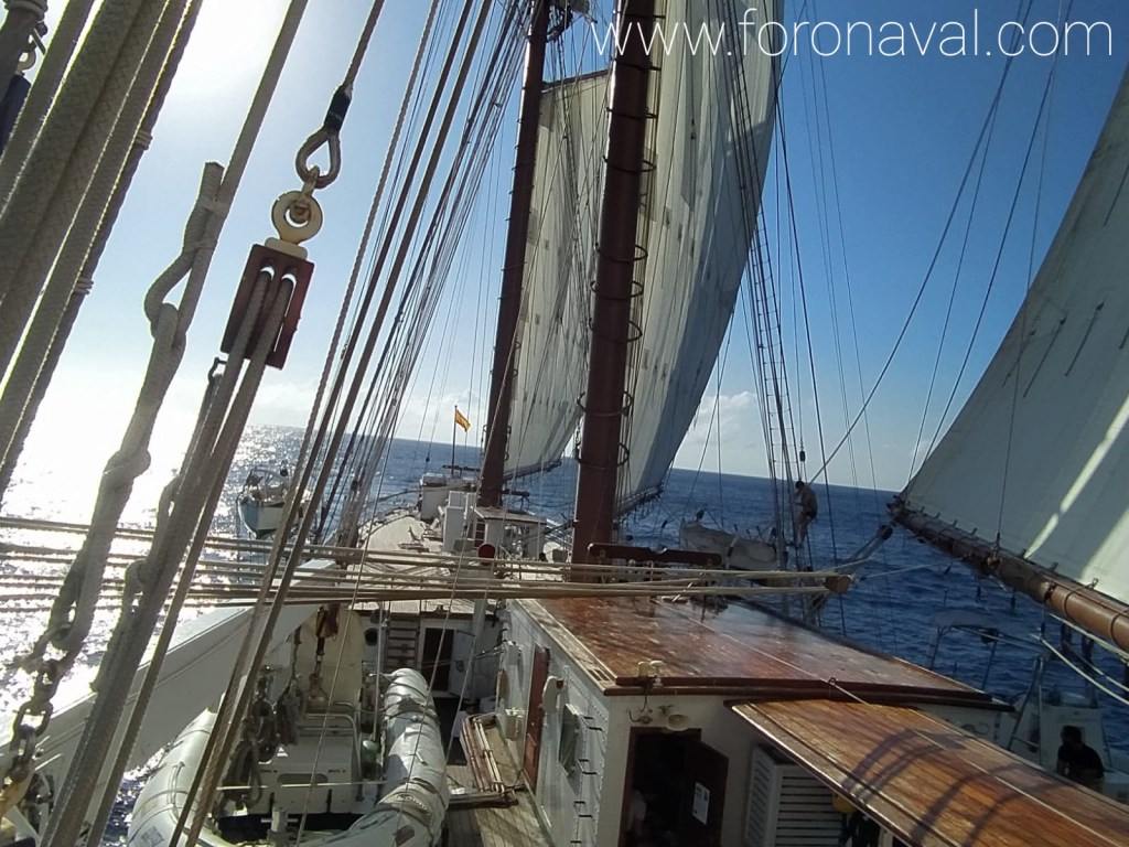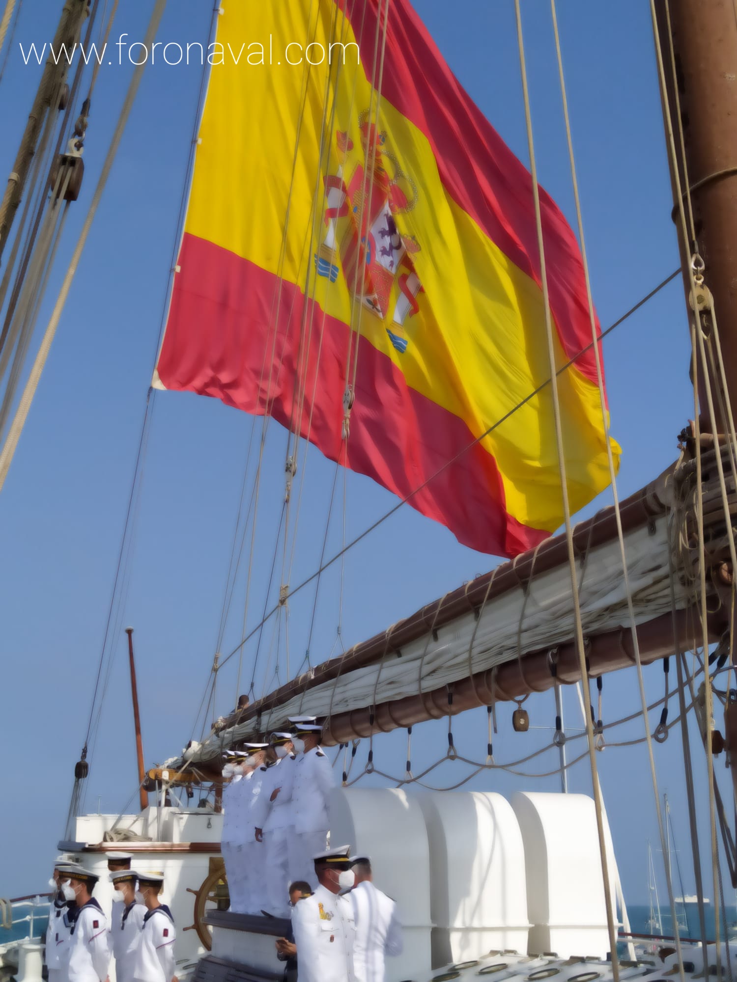 En estos momentos, el JS Elcano vuelve a Cádiz y navega por el centro del Canal, «siguiendo el rumbo marcado por Tráfico Marítimo», y nadie se va a enterar, porque nadie lo va a ver. Comprendemos que tengan prisa por llegar a casa, pero un barco así no pasa todos los días por las costas de Almería, Granada, Málaga y Cádiz con la oportunidad de enseñar el pabellón.