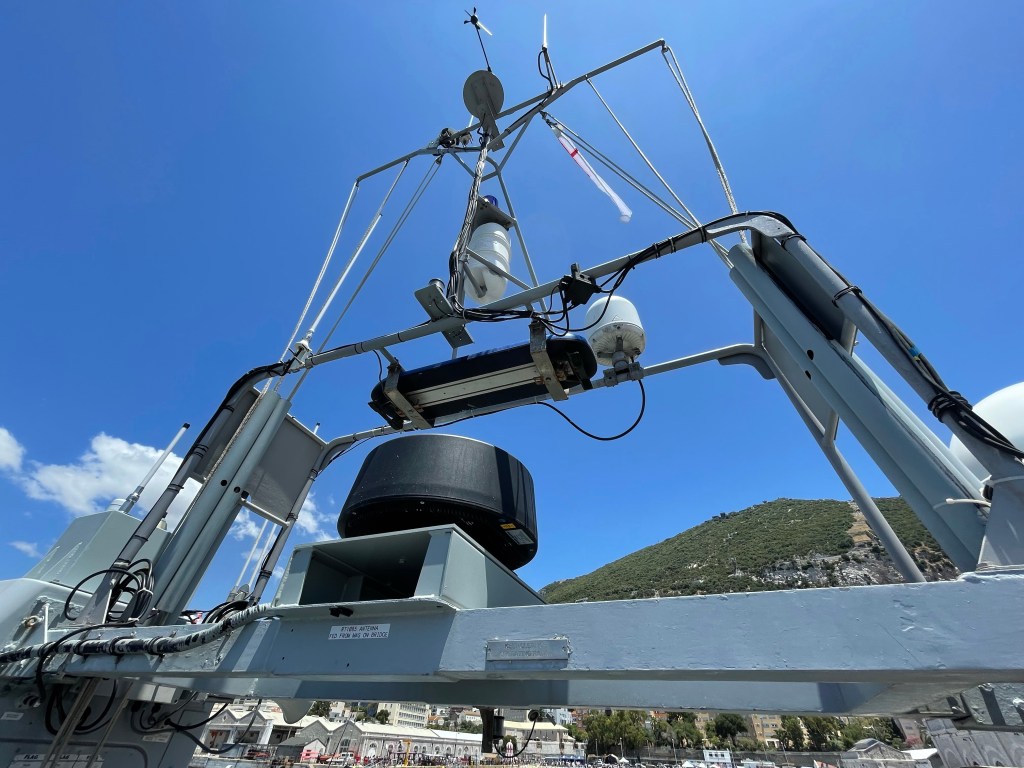 Mástil del Trent donde destaca su radar de exploración Terma Scanter 4100D y las antenas de su radar de navegación Sharp Eye (Gorka L Martínez Mezo)