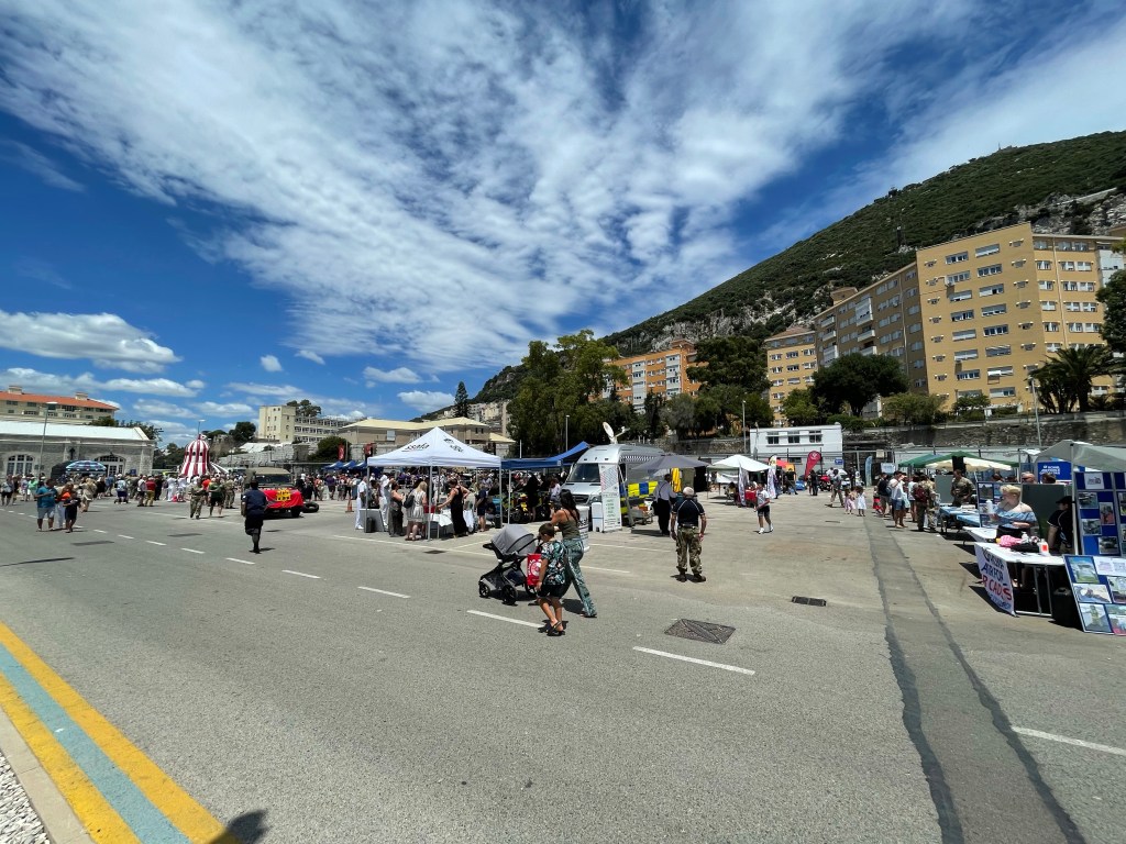Zona situada alrededor del escenario central donde habían montado sus mesas entidades como los Royal Air Force Cadets, organizaciones de apoyo a las FFAA y otras locales como el Gibraltar Heritage Trust, la Cancer Awarenes Society, Childline o el club local de rugby (Gorka L Martínez Mezo)