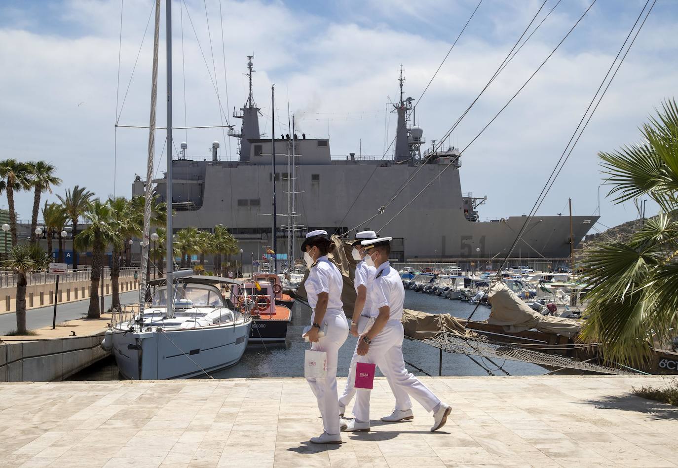 A finales del pasado mes de mayo, el Buque de Asalto Anfibio L-51 Galicia se convirtió en el hogar de unos 180 alumnos de la Escuela Naval Militar y de la Escuela de Suboficiales de la Armada que han participado, por espacio de un mes, en un crucero de instrucción, tras zarpar el día 24 de la Base Naval de Rota para realizar la primera experiencia de estos futuros oficiales y suboficiales en un buque de la Flota. Los 180 alumnos se unen a los 189 marinos que componen la dotación habitual del buque, al que se añaden para este crucero unos 20 miembros del Grupo Naval de Playa, que componen las dotaciones de dos de las cuatro lanchas de desembarco anfibio LCM-1E que lleva a bordo el buque anfibio en esta ocasión.