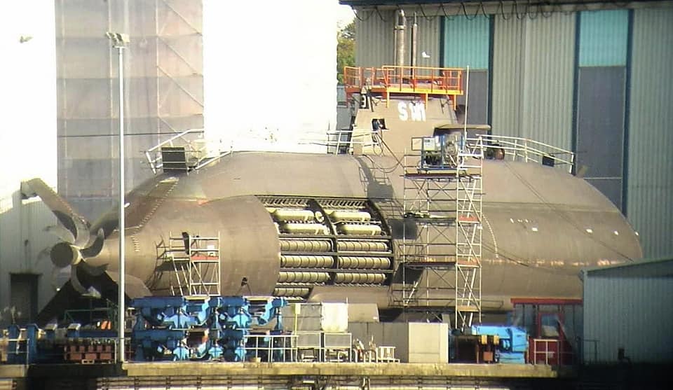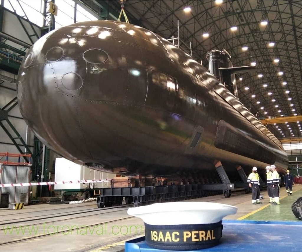 Submarine S-81 Isaac Peral waiting to be put afloat at the Navantia covered submarine construction hall at Navantia Cartagena (Diego Quevedo Carmona)