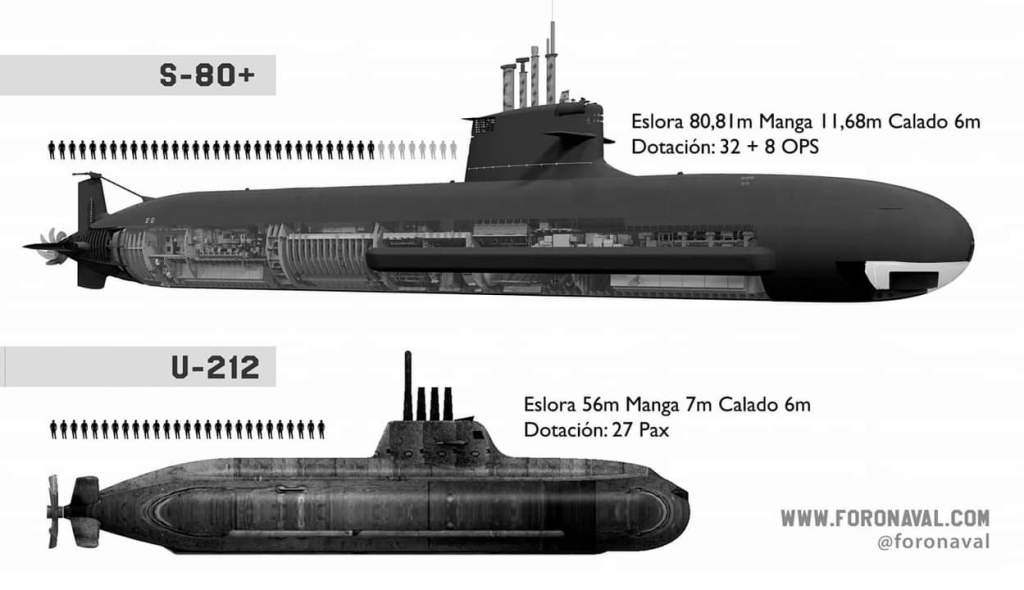 Comparison between submarines U-212A and S-80 + (Picture: Foro Naval)
