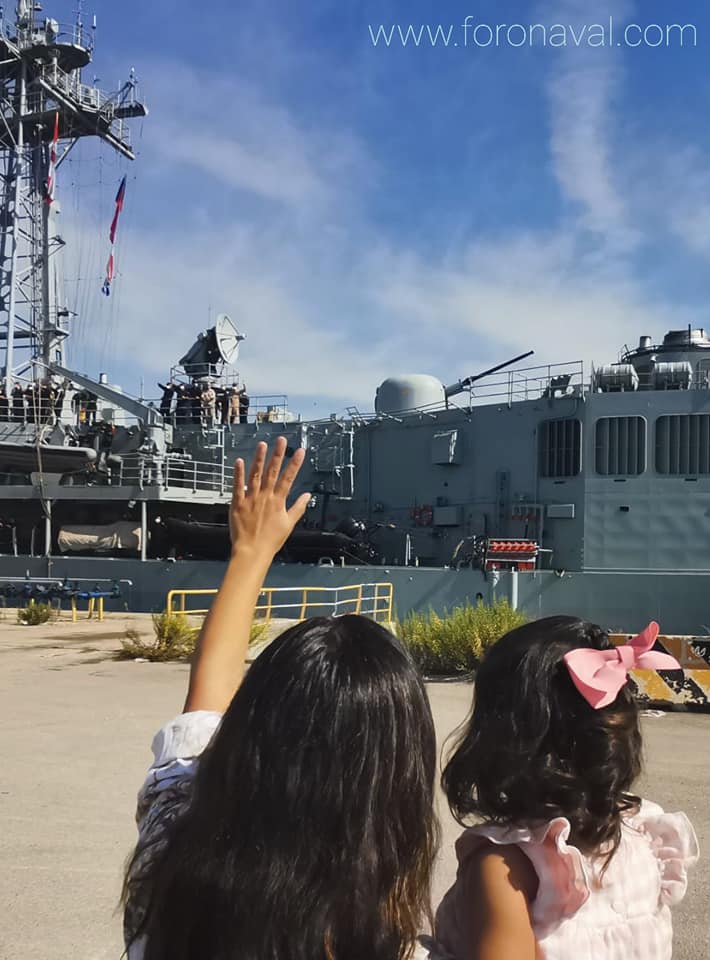 Durante la partida de la fragata F-82 Victoria, las familias de los dos centenares de marinos de su dotación, han podido acudir al muelle para despedirles y desearles buena mar y éxito en la misión, sumándonos desde estas lineas a esos buenos deseos.