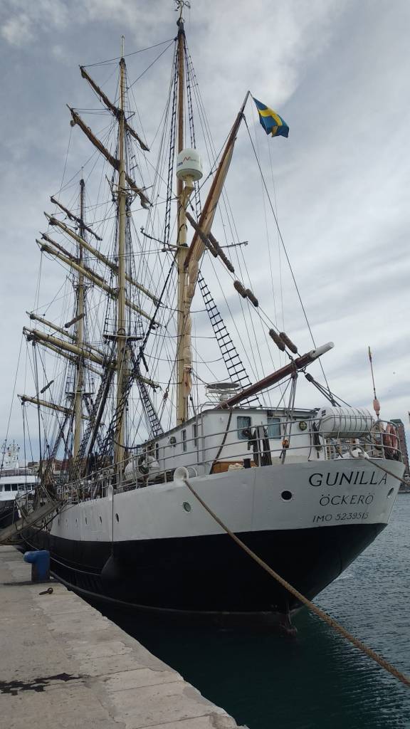 El Gunilla es un bonito buque escuela sueco construido en Oskarshamn en 1940 para servir como un lujoso yate velero, aunque debido a los efectos de la Segunda Guerra Mundial no llegó a botarse hasta 1945, sirviendo desde entonces como barco mercante costero llamado Monica, realizando navegaciones de cabotaje por el norte de Europa, sobre todo en el Mar Báltico y los estrechos daneses, transportando en su bodega todo tipo de carga seca, especialmente cereales.
