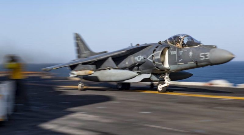 Un AV-8B Harrier Plus del USMC. Aunque debía ser sustituido por el F-35B en los próximos años, a principios de 2021 El Cuerpo de Marines de los Estados Unidos anunció que extenderá la vida útil de sus AV-8B Harrier hasta el 2029, lo que garantizaría la operativa de los Harrier marroquíes (y españoles) hasta 2029/2030