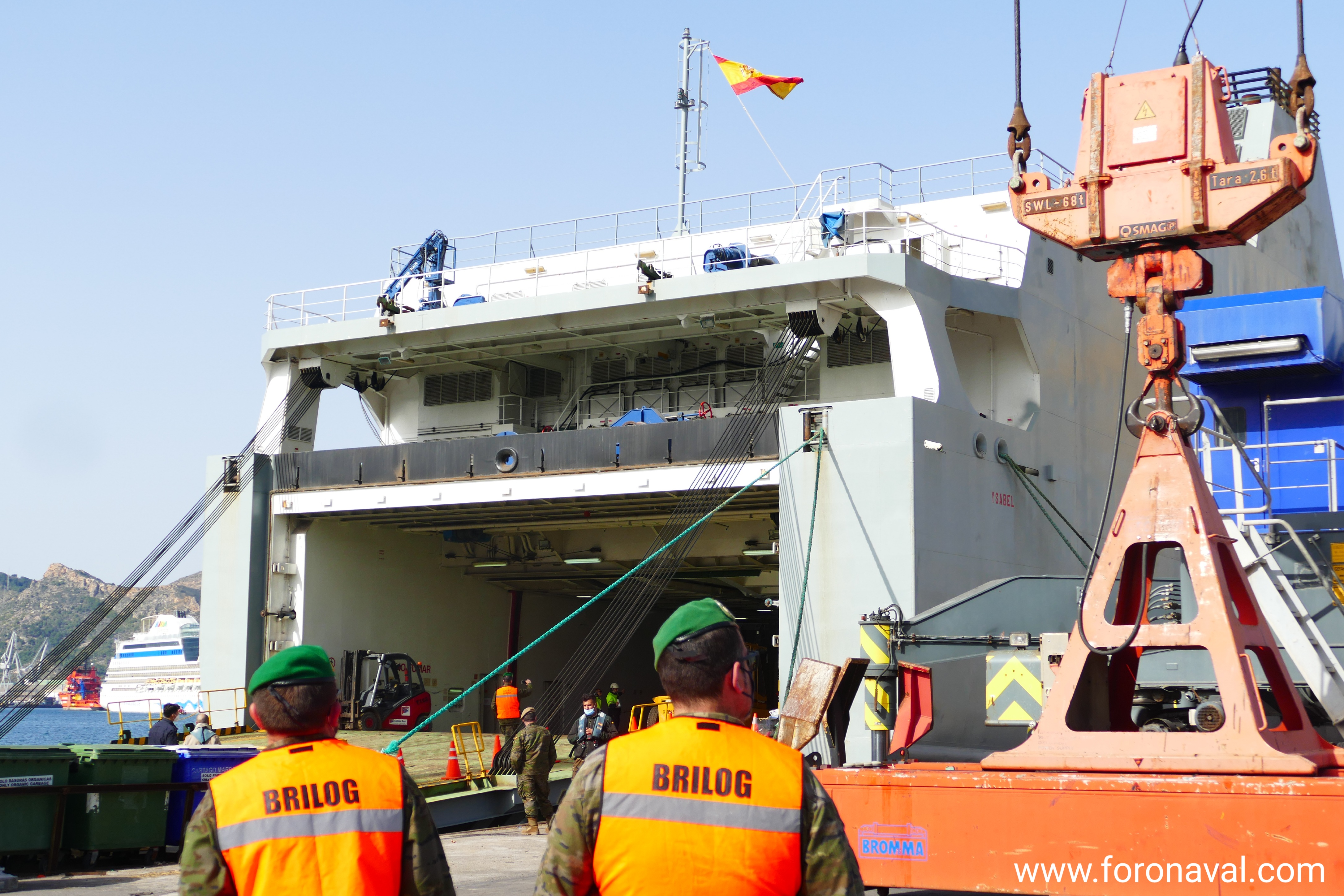 La Armada Española ha estrenado, este último día de enero, al nuevo Buque de Transporte Logístico Ysabel (A-06) que ha zarpado del Puerto de Cartagena para cumplir su primera mision militar, realizando una carga de diferentes pertrechos y vehículos del Ejército de Tierra con destino a Palma de Mallorca (donde se dirige en estos momentos) Melilla, Ceuta y Las Palmas de Gran Canaria, tras embarcar dichos materiales en el muelle del Puerto Comercial cartagenero, según nos informa nuestro compañero de Foro Naval, el Alférez de Navío (R) Diego Quevedo Carmona.