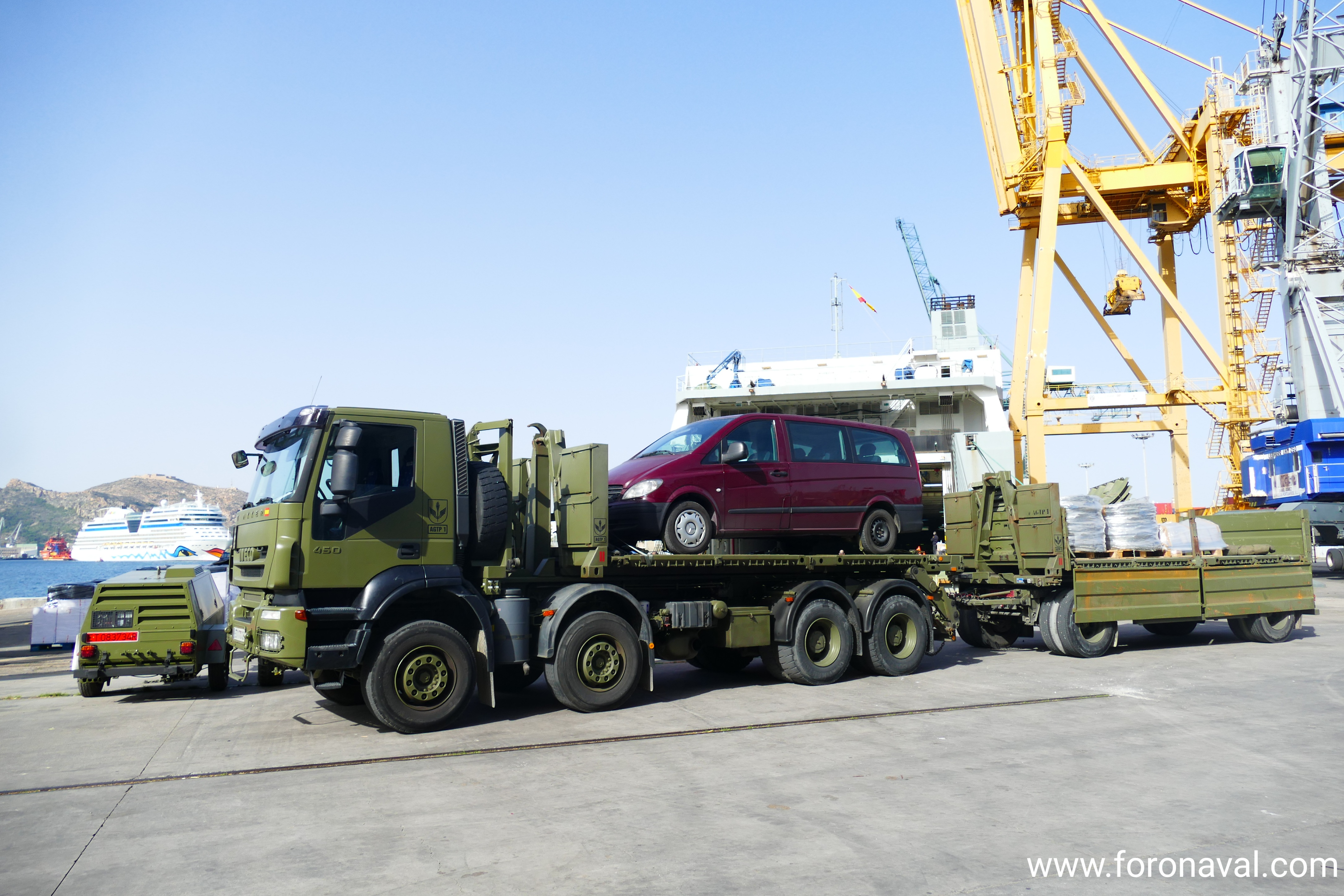 Diego Quevedo Carmona también nos cuenta el gran trabajo que han realizado los miembros de la Agrupación de Apoyo Logístico N°21 (AALOG 21) del Ejército de Tierra para cargar el buque Ysabel (A-06) en su estreno. En esta primera ocasión y, a modo de experimentación, han acudido a Cartagena varios representantes militares de diferentes unidades logísticas de Almeria, Granada, Sevilla, Madrid, Zaragoza, etc. para empezar a familiarizarse con esta nueva unidad naval y ver, de primera mano, el funcionamiento, capacidades, prestaciones y posibilidades del BTLET Ysabel (A-06) durante su estreno como buque de transporte logístico militar.