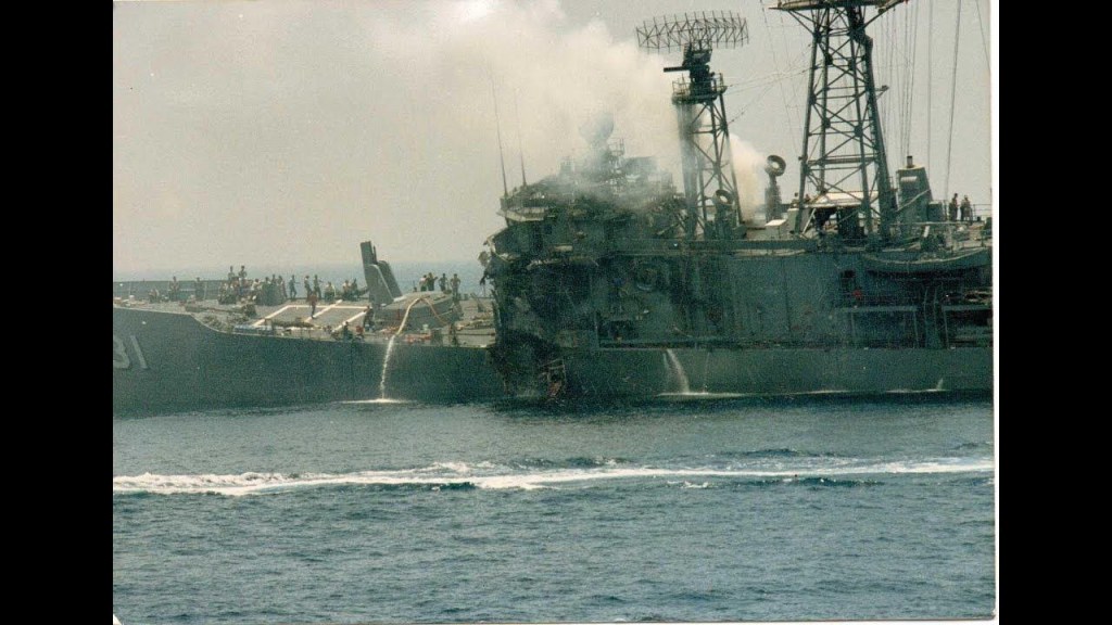 La escora podría estar relacionada con daños en el casco que hayan causado una grave inundación…. o con los efectos de la lucha contra el fuego. Recordemos que la Stark casi se hunde por el efecto de superficie libre sobre la estabilidad.