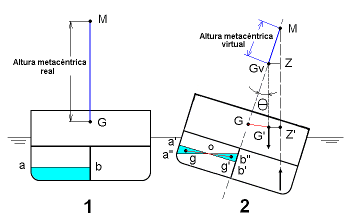 El efecto de superficie libre es el efecto que se produce en los barcos cuando un tanque a bordo se encuentra parcialmente lleno, y la superficie del líquido contenido en su interior está libre de mantener la horizontal durante el movimiento de balance, experimentándose una pérdida de estabilidad o disminución del brazo (GZ’) de la curva adrizante.