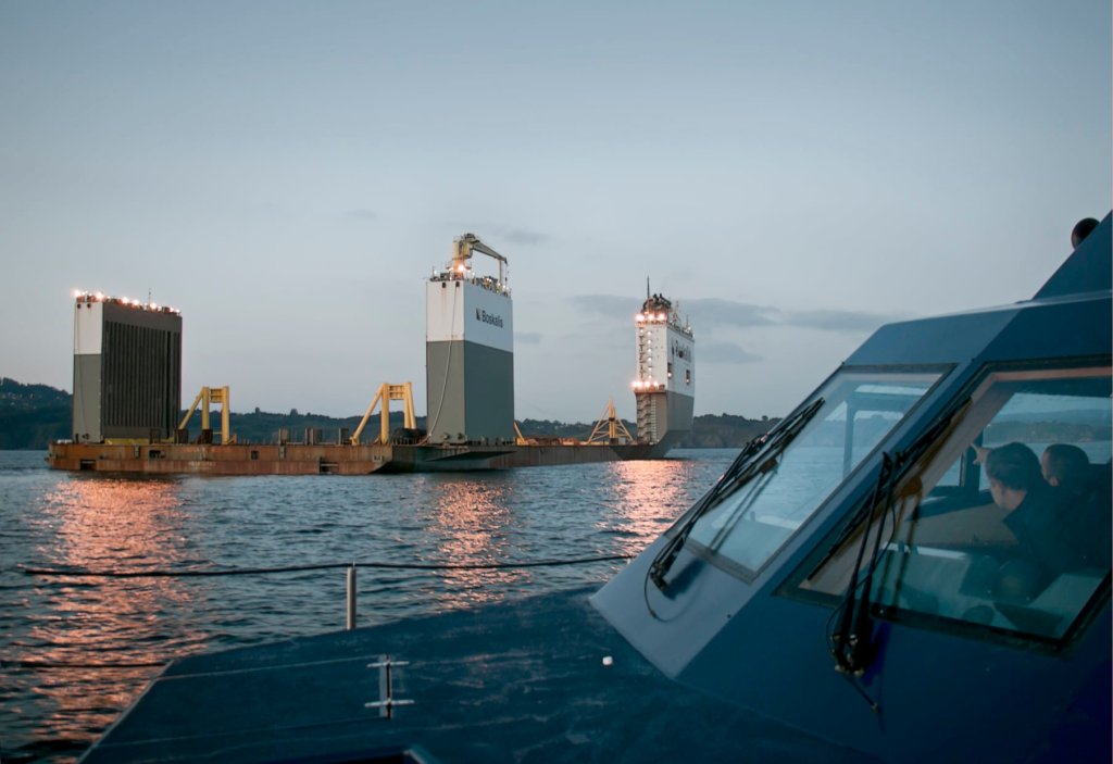 Desde hace unos días está fondeado frente la coruñesa costa de Oleiros esta estructura que es el mayor dique semisumergible del mundo. Dentro de unos días cambiará de ubicación y se dirigirá al puerto exterior de Punta Langosteira, donde cargará unos módulos o cajones que tienen por destino unas obras aeroportuarias en Filipinas.