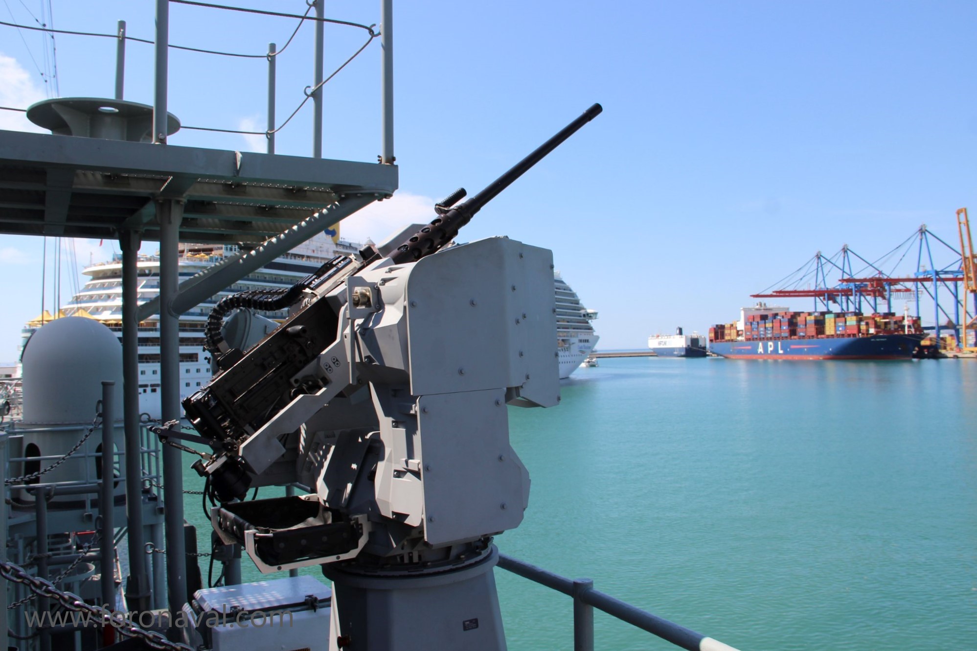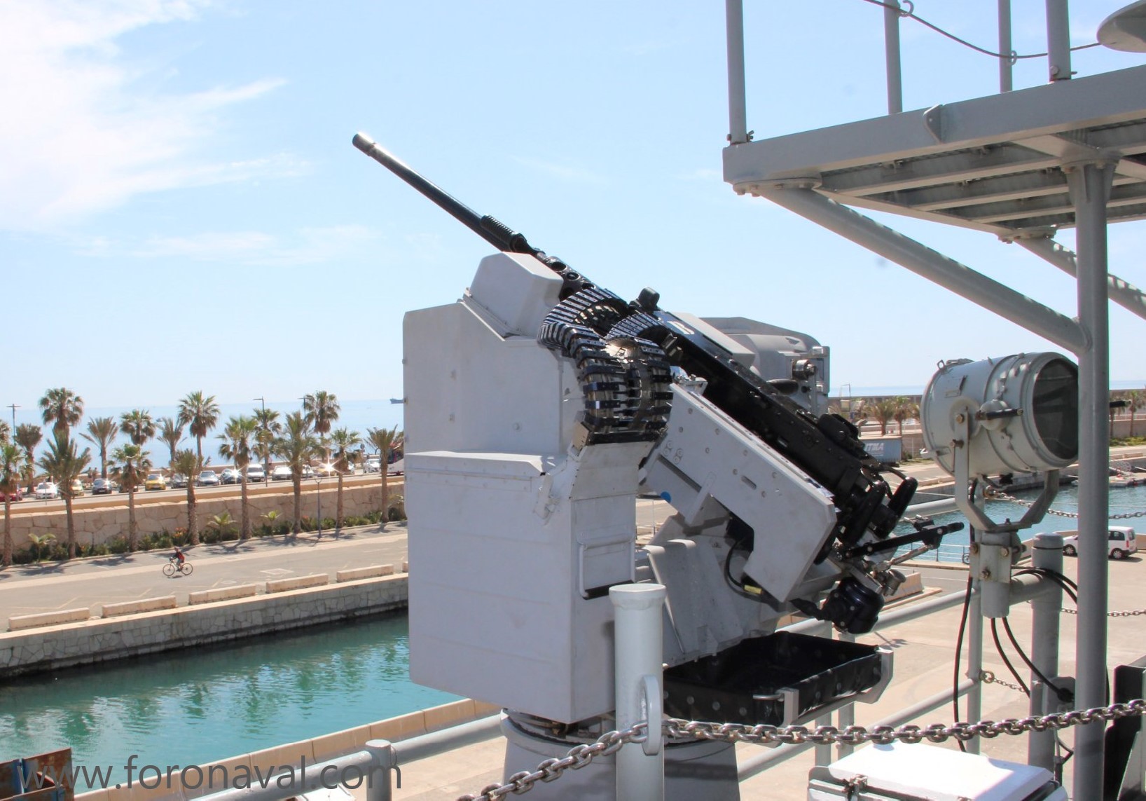 Como ya hemos visto, hasta ahora los buques de la Armada Española estaban equipados con varias ametralladoras Browning M2 de calibre 12,70 mm, junto a otras de menor calibre, como las famosas MG-3 de 7,62 mm, repartidas por varios puntos estratégicos de los buques, conocidos como “tinteros”, debiendo ser estas armas apuntadas manualmente “a ojo” por sus sirvientes, lo que limitaba considerablemente las operaciones nocturnas o con poca visibilidad. Además, los sirvientes debían también manejar el arma con su fuerza física para estabilizarla durante los disparos, por lo que la precisión podía variar considerablemente con las condiciones de la mar y el movimiento del buque propio.