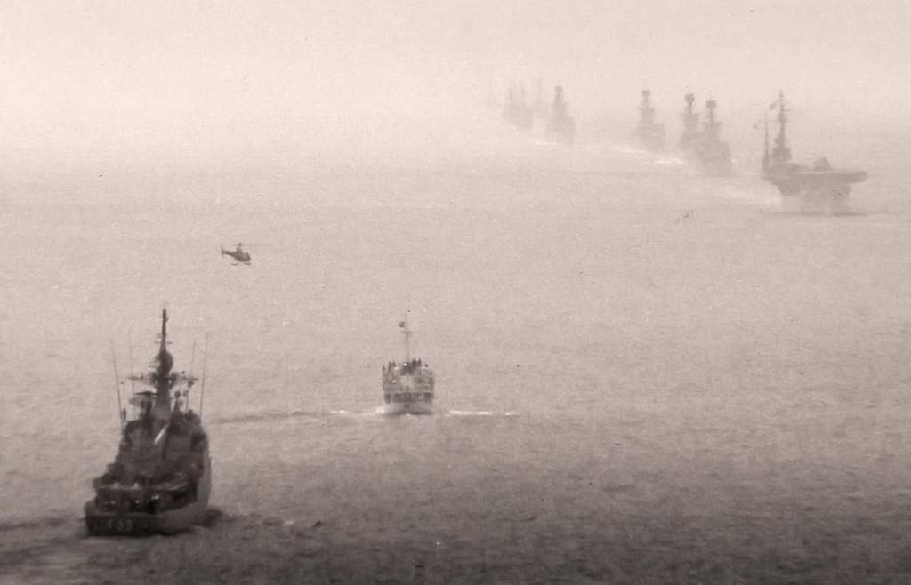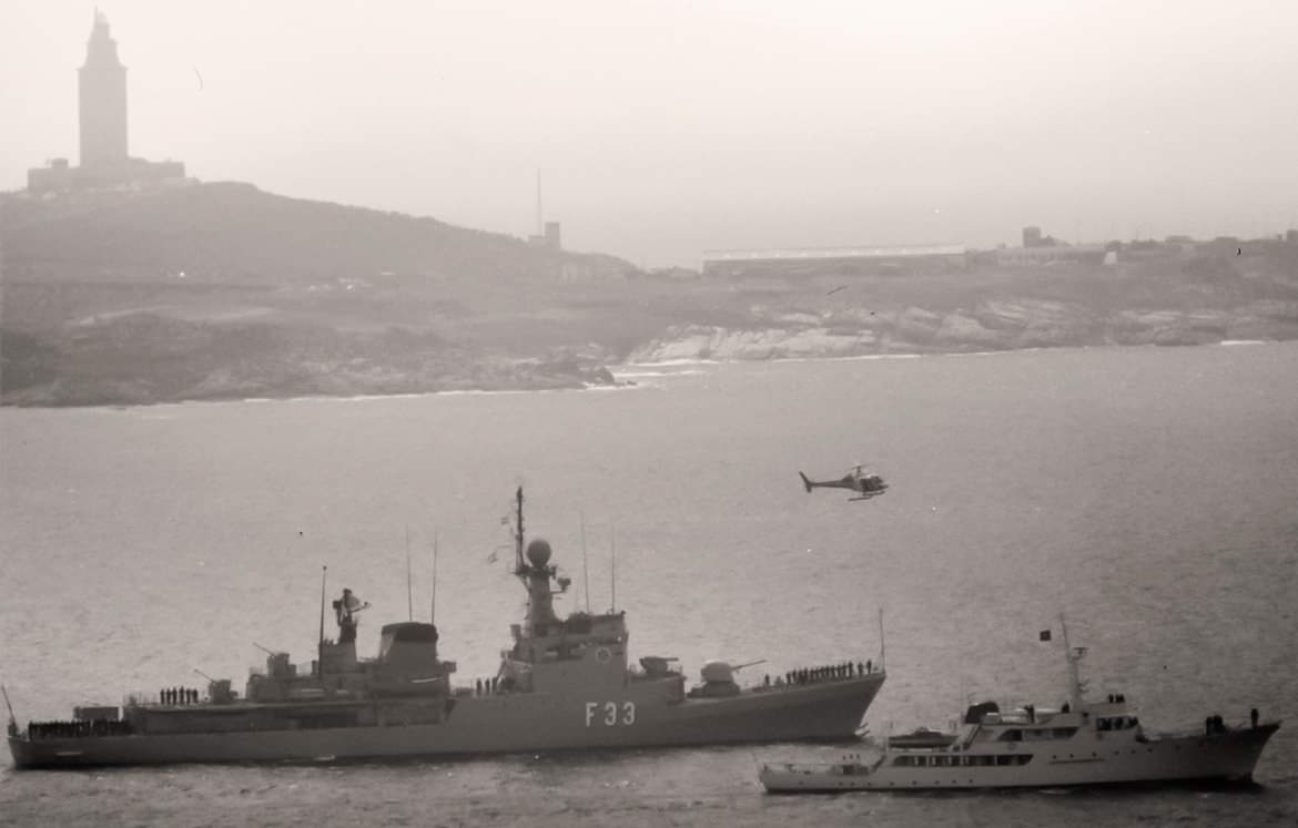 Formando parte de ese día, el día 1 de junio a las 5 de la tarde, tuvo lugar en aguas coruñesas una revista aeronaval presidida por S.M. el Rey Juan Carlos I.