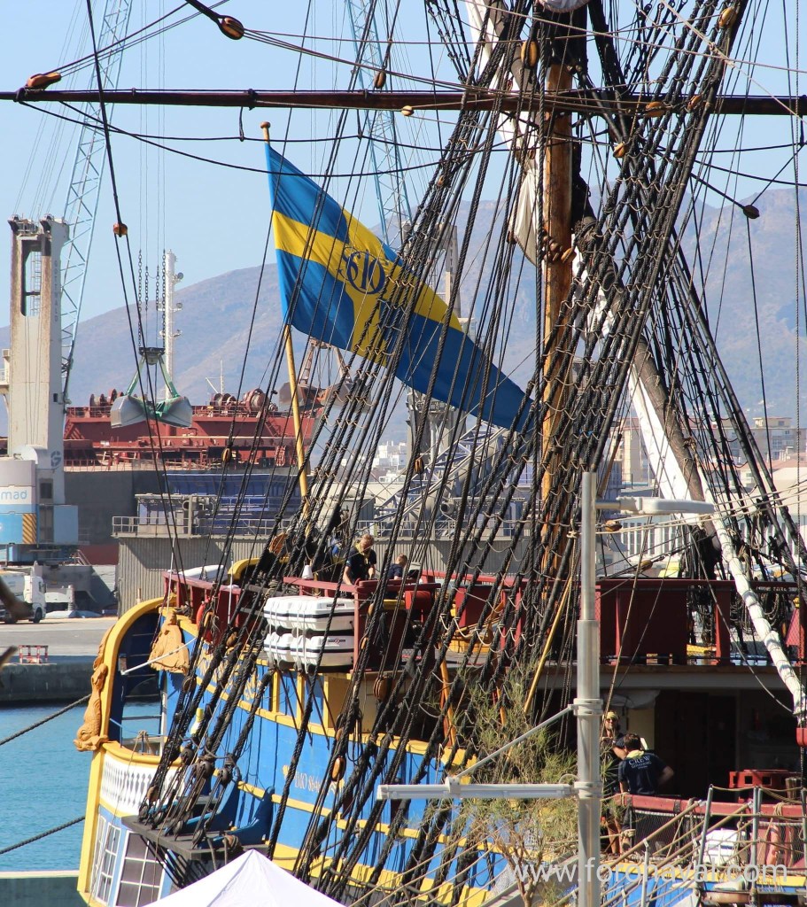 El último buque participante en el Festival Marítimo de Málaga es el Götheborg. Se trata de la réplica de un navío de 30 cañones del mismo nombre que, con 830 toneladas de desplazamiento, sus 58 metros de eslora y sus tres mástiles que soportan 1.964 m² de velamen, ostenta en la actualidad el título de ser el buque oceánico más grande del mundo construido integramente en madera. El Götheborg imita a una nave indiana del siglo XVIII, de las que operaba la Compañía Sueca de las Indias Orientales (en sueco Svenska Ostindiska Companiet, o SOIC) en la ruta comercial hacia China, cuyo original, botado en 1738, se hundió cerca de Gotemburgo en 1745, siendo descubierto en 1984, dando así inició a una campaña de investigación arqueológica que dio lugar a la construcción de la réplica actual en 1995, siendo finalmente botado en 2003. Un par de años más tarde organizó una travesía entre los años 2005 y 2007 para emular la ruta histórica hacia Asia en la que operaba el buque original.