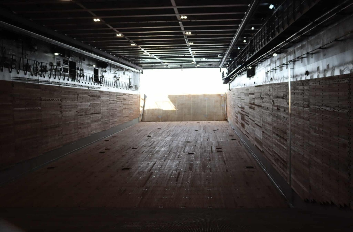 El Anadolu tiene un hangar de carga ligera de 1.880 m² capaz de transportar contenedores normalizados del tipo TEU, junto con 27 vehículos de asalto anfibio (AAV) que pueden pasar con facilidad al dique inundable de 1.165 m² con capacidad para alojar cuatro lanchas de desembarco anfibio del tipo LCM-1E o dos vehiculos anfibios de colchón de aire del tipo LCAC «overcraft». Asimismo dispone de un hangar de carga pesada de 1.410 m² capaz de albergar 29 carros de combate (MBT) u otro tanto de vehículos de asalto anfibio (AAV) y contenedores TEU.