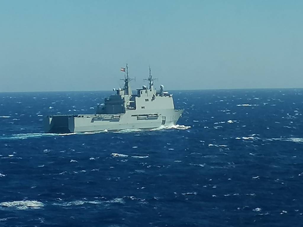 Justo tras acabar la vistosa celebración del V Centenario de la I Vuelta al Mundo que, en forma de espectacular Revista Naval, rendía homenaje a Juan Sebastián de Elcano y a los supervivientes de la nao Victoria, el buque LHD Juan Carlos I (L-61) se despedía de las aguas de la hermosa costa atlántica gaditana para cruzar el Estrecho de Gibraltar y adentrarse en el Mediterráneo, en compañía del buque LPD Castilla (L-52) y la fragata Navarra (F-85) para poner rumbo a Turquía, donde participarían en el importante ejercicio Mavi Balina 22 / Dynamic Mariner 22 organizado por la OTAN entre el 11 y el 22 de septiembre, si bien la Fuerza española estará desplegada un total de 32 días a causa de los tiempos de tránsito de ida y vuelta entre Turquía y España. No en vano tiene que navegar por el Mediterráneo de punta a punta.