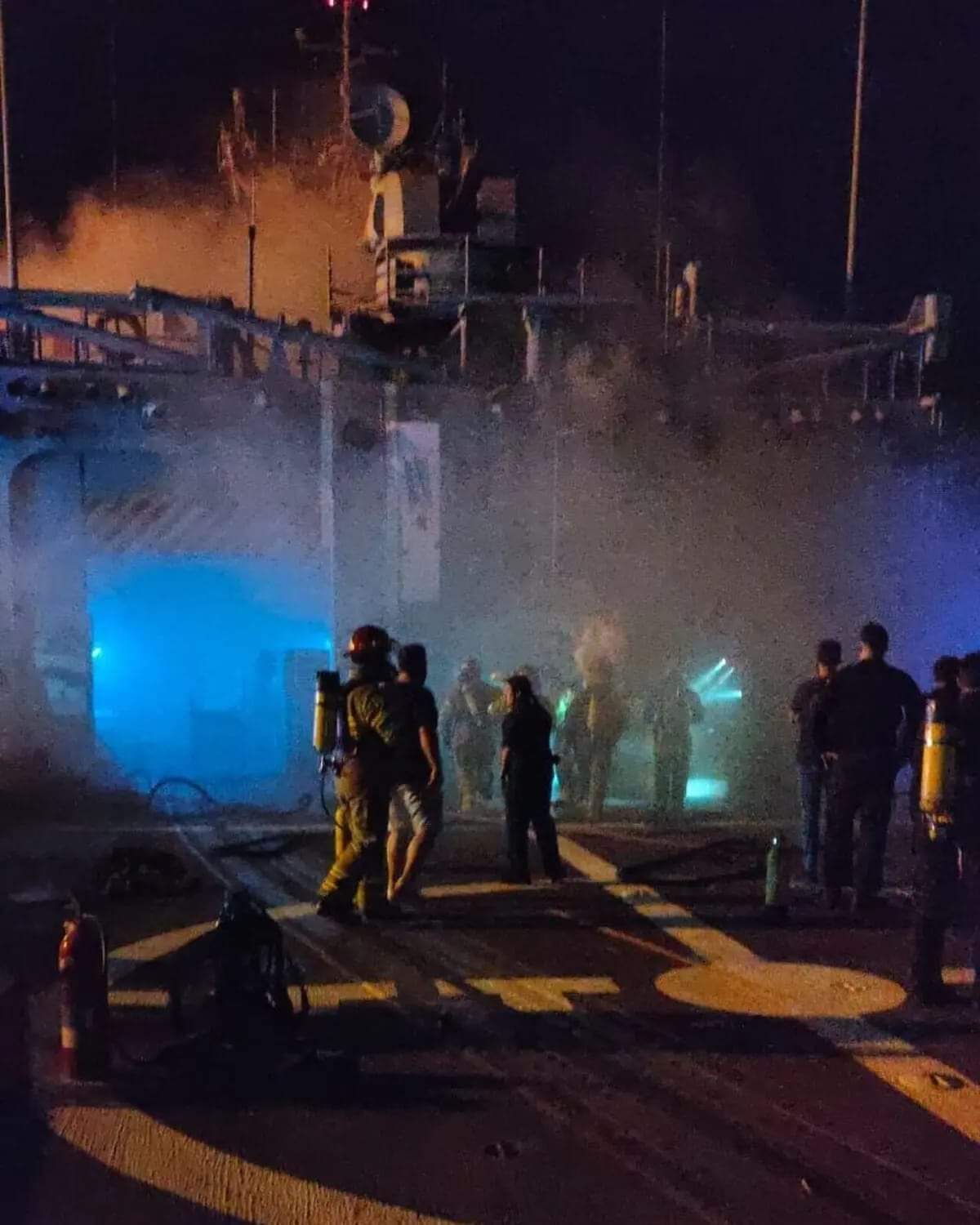 Aunque en un primer momento se han controlado las llamas con medios propios de la Armada y de la Marina estadounidense, el fuego volvió a reavivarse, por lo que los bomberos de la Base Naval debieron volver a actuar con los trabajos de extinción. Según ha trascendido, se han evacuado con éxito a más de 20 personas de la dotación de la fragata y parece que de momento no hay heridos.