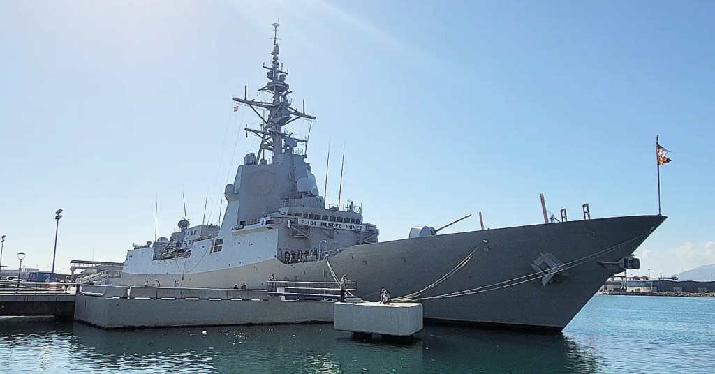 La fragata Méndez Núñez (F-104) ha atracado este pasado sábado, 12 de noviembre, en el Muelle Adosado del Dique de Levante del Puerto de Málaga. La última vez que estuvo en Málaga fue en febrero de 2018, cuando tuvimos la fortuna de poder visitarla junto a su hermana más moderna, la Cristóbal Colón (F-105), evento del que ya escribimos ampliamente en este mismo blog, dando lugar a la publicación de uno de los artículos más completos y detallados que existen sobre las fragatas F-100 de la clase Álvaro de Bazán de la Armada española.
