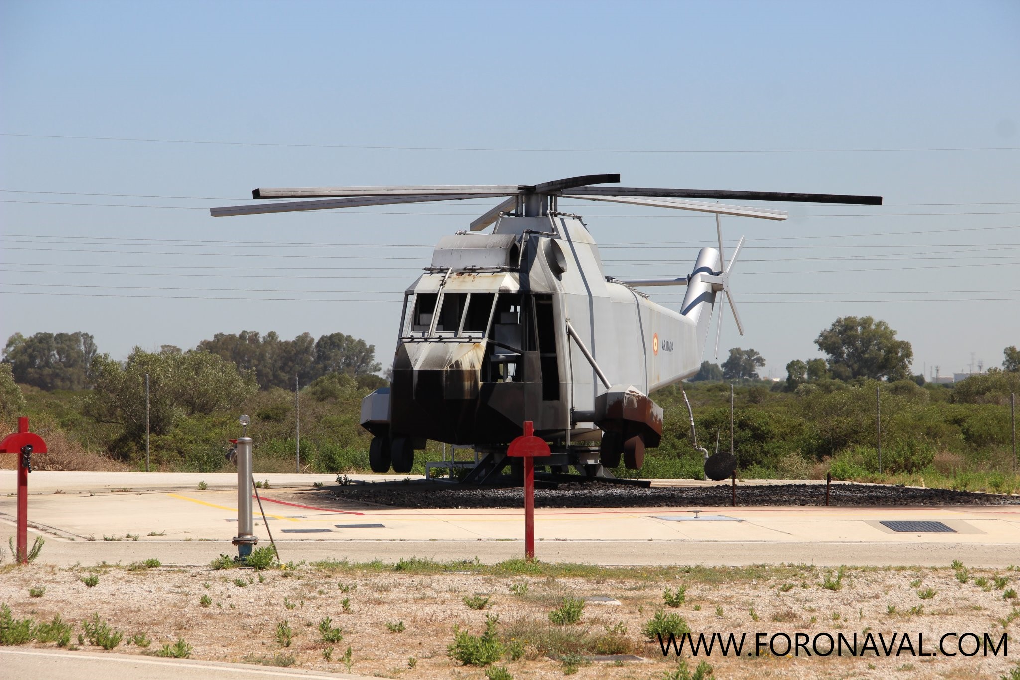 Junto al simulador del buque nos encontramos con otros simuladores más pequeños, que son los antes mencionados del helicóptero SH-3D Sea King y del avión AV-8B+ Harrier II, que también tienen la capacidad de incendiarse de manera controlada y segura para el adecuado adiestramiento de los equipos que deben luchar contra el fuego, manejando aquí todas las herramientas, equipamientos y técnicas que les proporcionarán los conocimientos y destrezas necesarias para hacer frente a este tipo de situaciones con éxito.