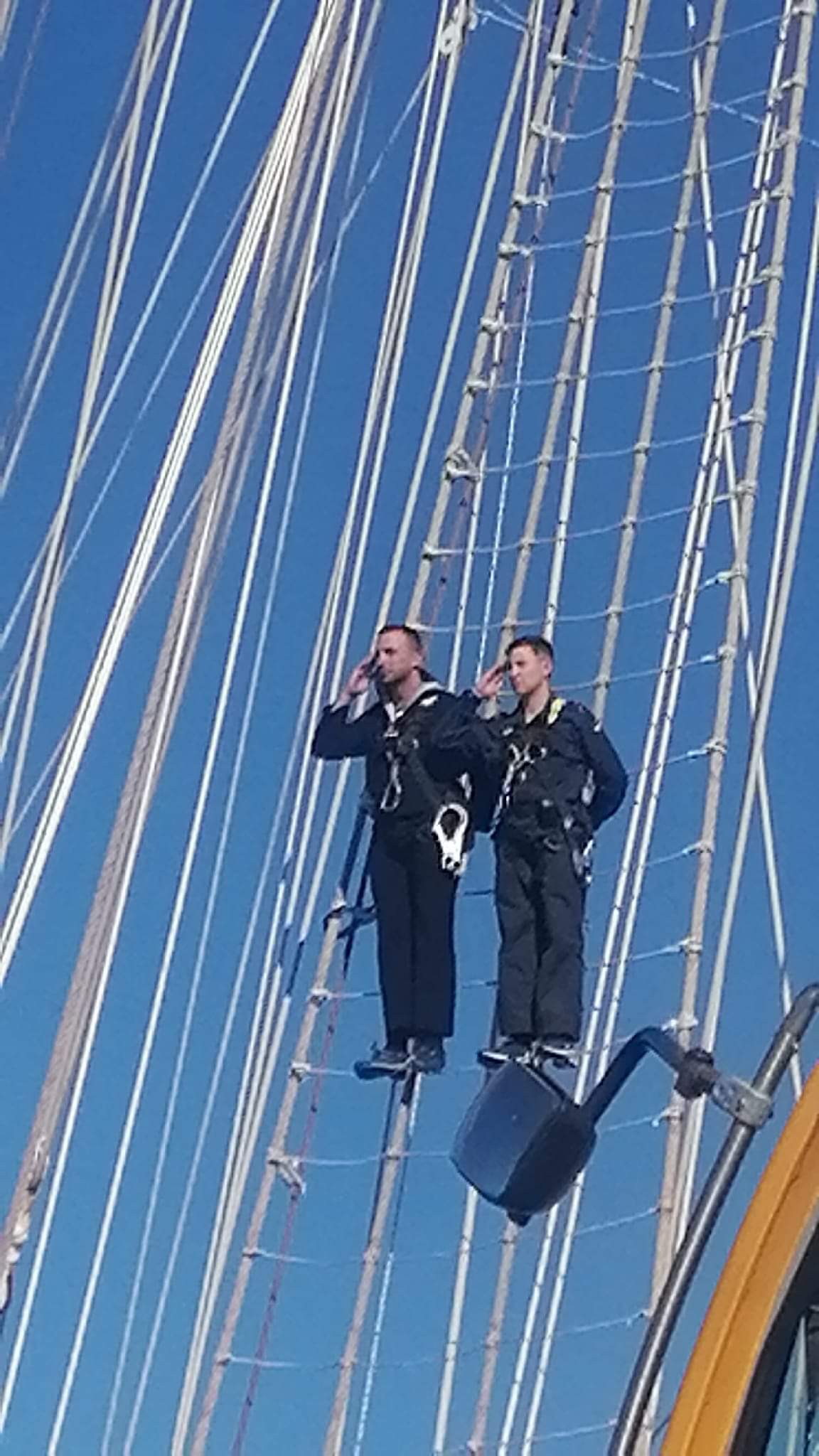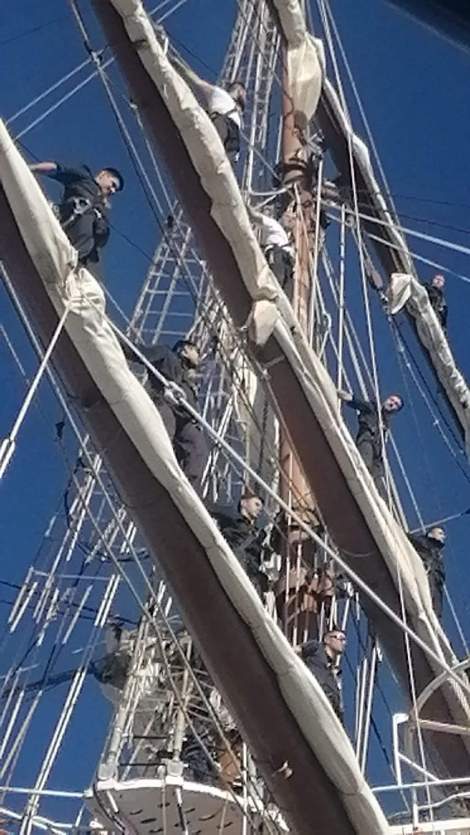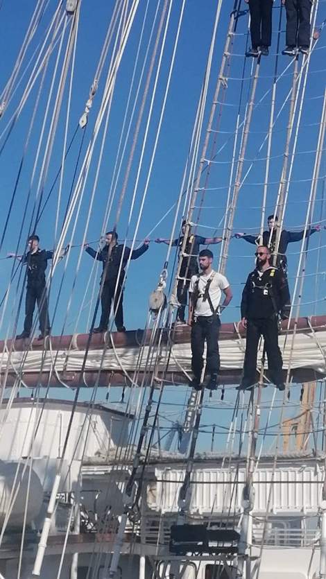 Este jueves 12, entre las 09:00 a 12:00 horas, se ha llevado a cabo ejercicios de adiestramiento marinero de la dotación y los guardiamarinas embarcados en el bergantín-goleta Juan Sebastián de Elcano (A-71) de la Armada, incluyendo la subida a los palos. Igualmente al mediodía se ha realizado el ensayo de saludo a la voz cubriendo la dotación los palos del buque.