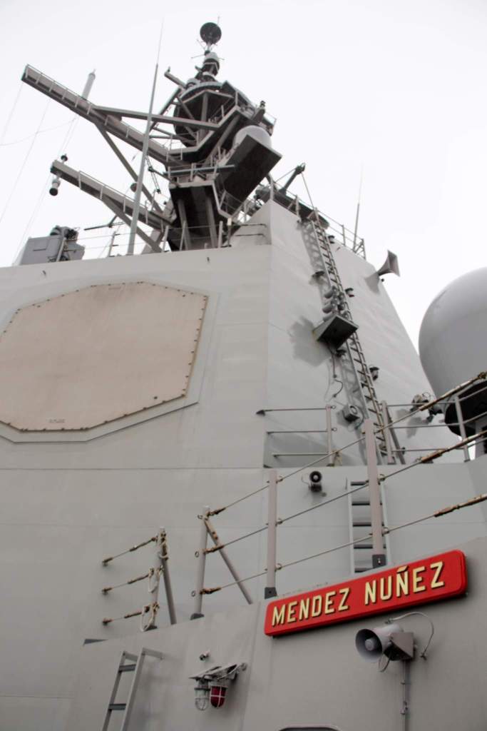 Hoy visité la fragata Méndez Núñez (F-104) de la Armada Española perteneciente a la clase Álvaro de Bazán o F-100. Atracó ayer jueves y hoy viernes en A Coruña y hoy mismo ha zarpado con destino a la base Naval de Rota. Viene de realizar unos ejercicios de certificación y también ha hecho un seguimiento del buque de guerra ruso Almirante Gorshkov (417) que surcó el Cantábrico.