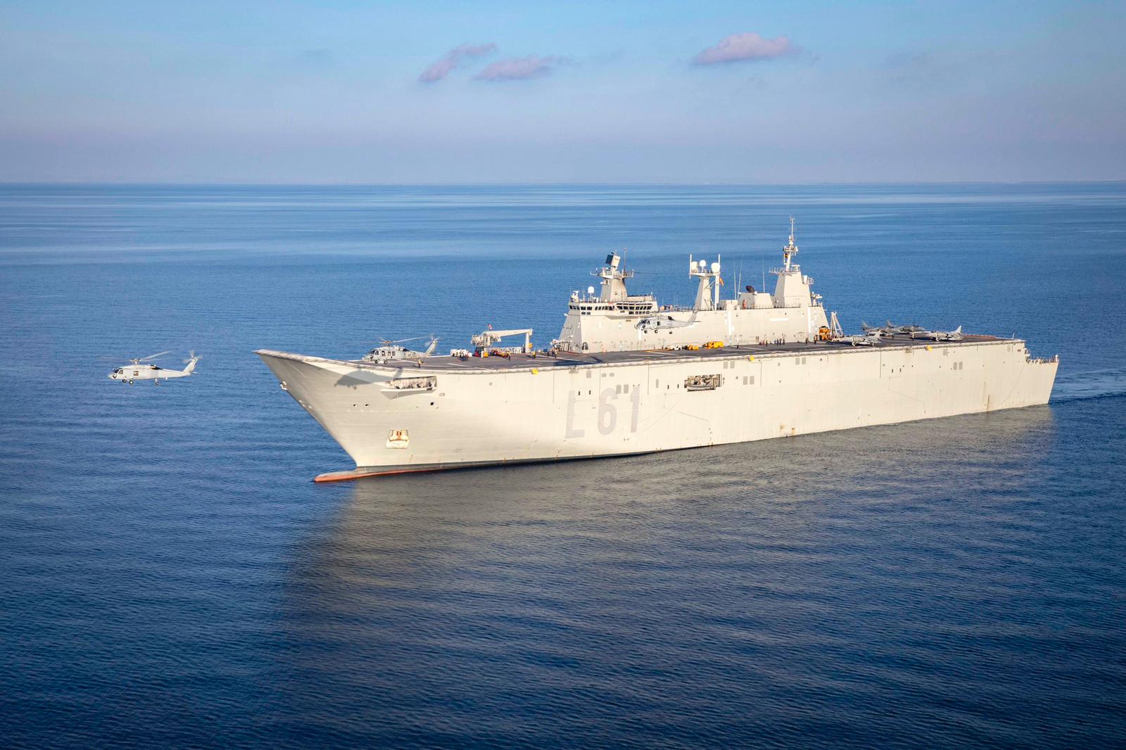 El ejecicio Neptune Strike organizado por la OTAN han participado Italia, Grecia, Macedonia del Norte, Albania, Montenegro, Reino Unido y Estados Unidos, destacando la participación simultanea del portaaviones americano USS George H.W. Bush (CVN-77), el portaaviones italiano Cavour (C-550) y el buque portaaeronaves anfibio Juan Carlos I (L-61), destacando que se realizaron operaciones de vuelo conjuntos entre los aviones AV-8B+ Harrier II italianos y españoles.