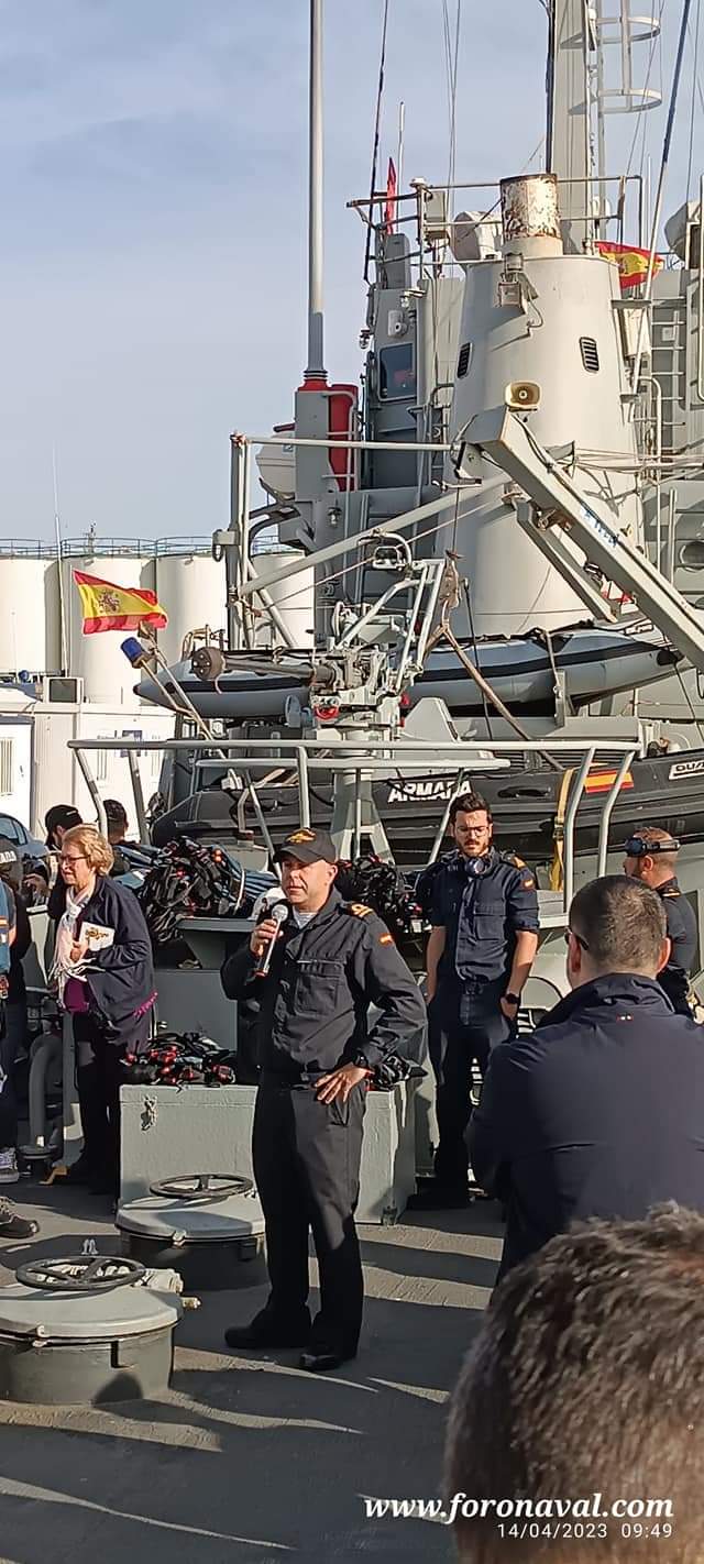 El Sr. Comandante, T.N. José Antonio Parejo dando la bienvenida a bordo a los familiares y amigos de la dotación (FOTO: Foro Naval)