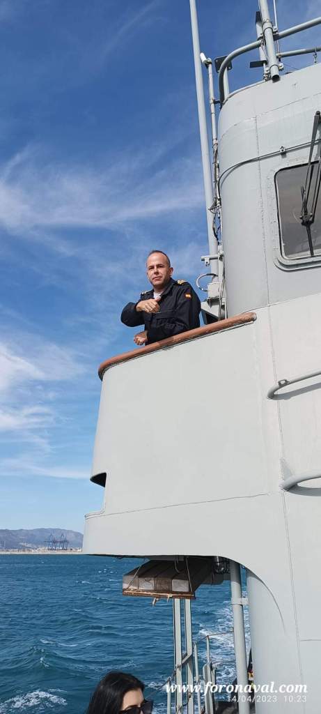 Este tipo de actividades son muy habituales en otras marinas militares de nuestro entorno, como por ejemplo la US Navy americana y la Royal Navy británica. Igualmente se suele invitar también a amigos del buque y conocidos de la dotación, siendo este el caso, ya que que nuestro compañero de Foro Naval, Txema Prada, fue invitado a nivel personal por el Comandante del Tagomago, el Teniente de Navío José Antonio Parejo, para participar de la jornada. Cabe mencionar que el Comandante tiene cinco obras colgadas en los mamparos del Tagomago dibujadas por Txema Prada, que es un reconocido artista gráfico costasoleño. Aprovecharemos también para decir que el Sr. Comandante, además de haber sido el 1° de su promoción de la Armada en la Escuela Naval Militar (ENM) de Marín, es también un consumado fotógrafo de gran nivel, pudiendo recomendar desde estas líneas la página www.joseparejo.com, donde podemos disfrutar de algunos de sus trabajos. Igualmente merece la pena destacar en lo profesional que, con anterioridad, estuvo destinado dos años como oficial de intercambio dentro de la OTAN, en la fragata Schleswig-Holstein (F-216) de la Deutsche Marine, en un puesto en el puente, aprendiendo para ello el idioma alemán en un curso acelerado de cuatro meses.