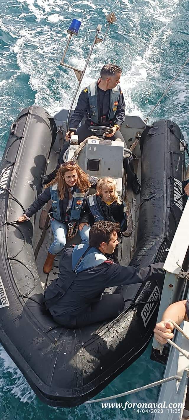 Unos invitados suben a bordo de la embarcación auxiliar tipo RHIB del patrullero, empleada para misiones de visita y registro o busqueda y rescate (FOTO: Foro Naval)