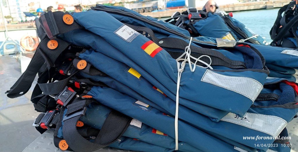 La organización a bordo era excelente: chalecos salvavidas para todos a bordo del Tagomago (FOTO: Foro Naval)