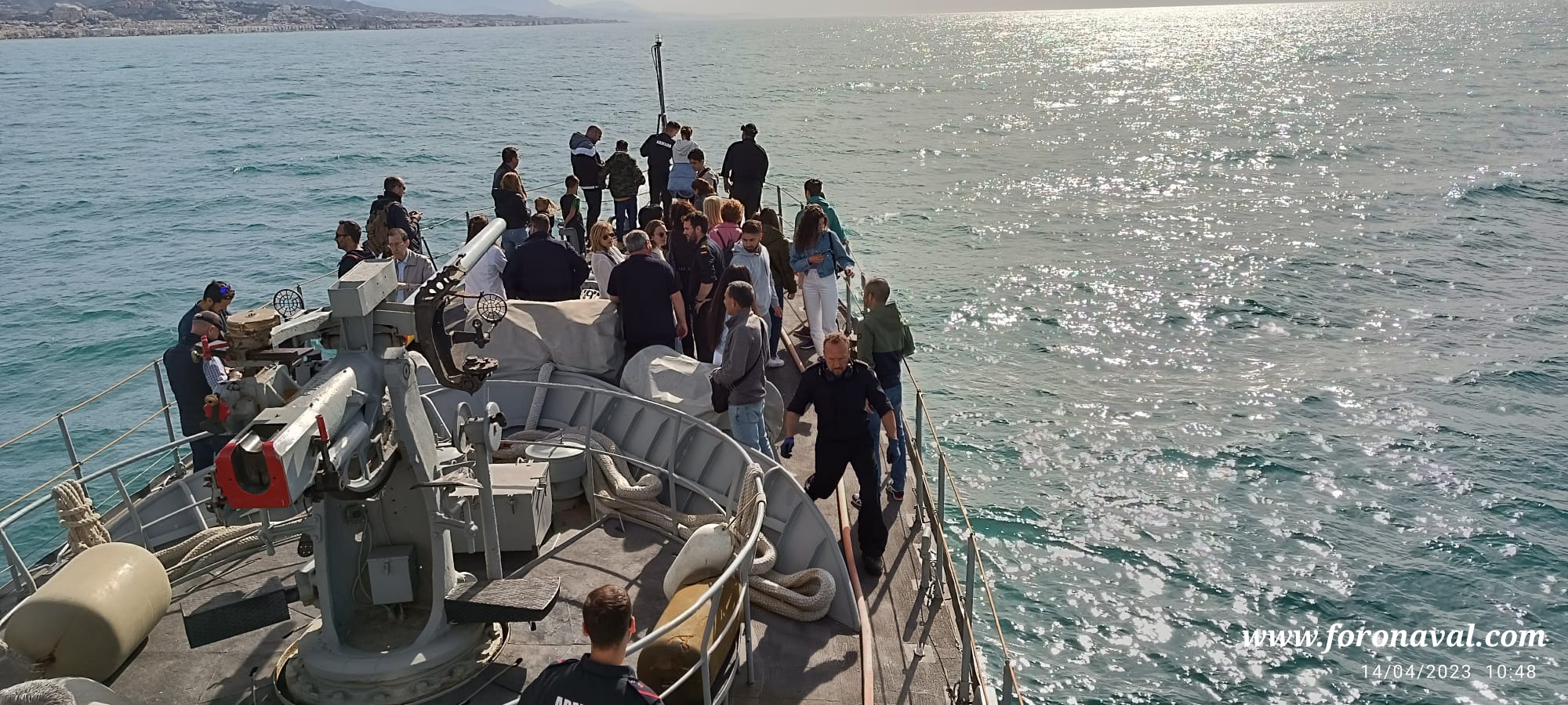 Nuestros compañeros de Foro Naval admirando la ciudad de Málaga desde la mar a bordo del patrullero Tagomago (FOTO: Foro Naval)