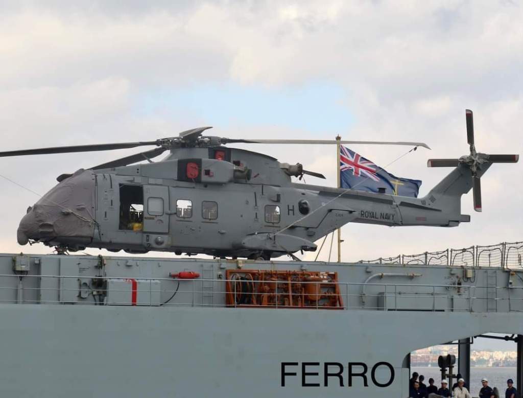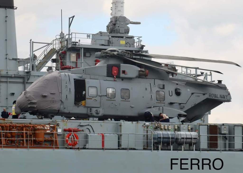 Una compañía de la Infantería de Marina británica (Royal Marines) está embarcada en los buques RFA Lyme Bay (L-3007) y RFA Argus (A-135) de la Real Flota Auxiliar, que en esta ocasión lleva tres helicópteros Merlin Mk4 a bordo.