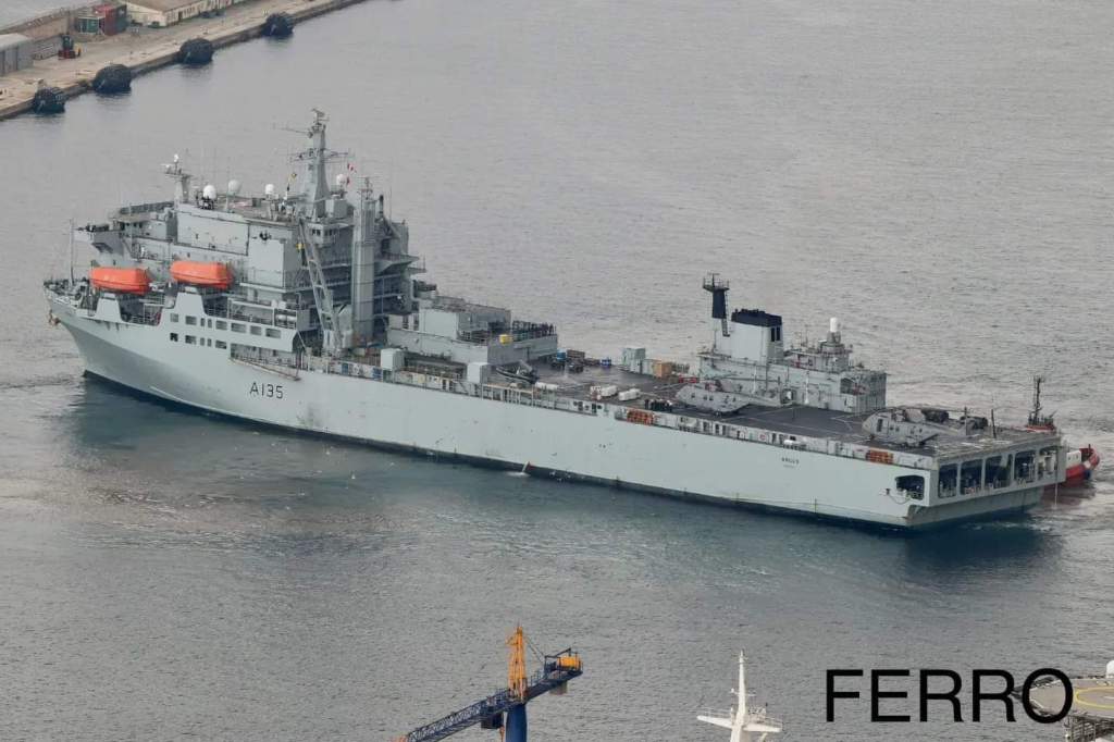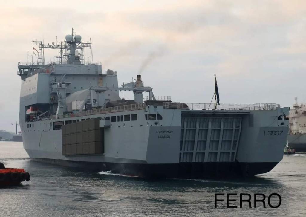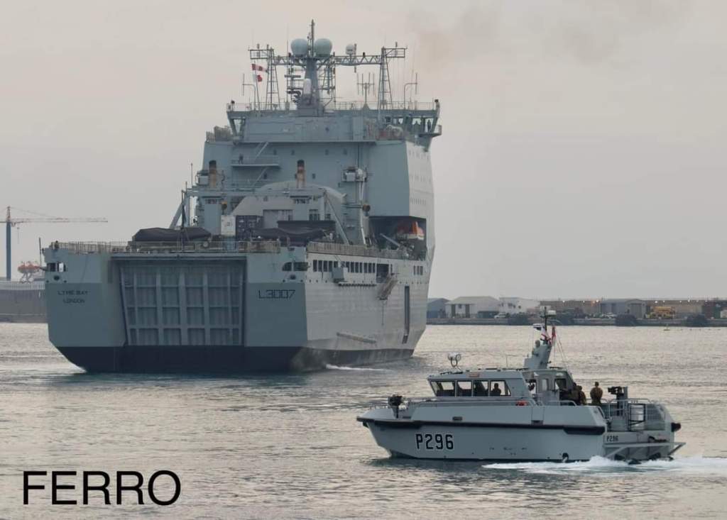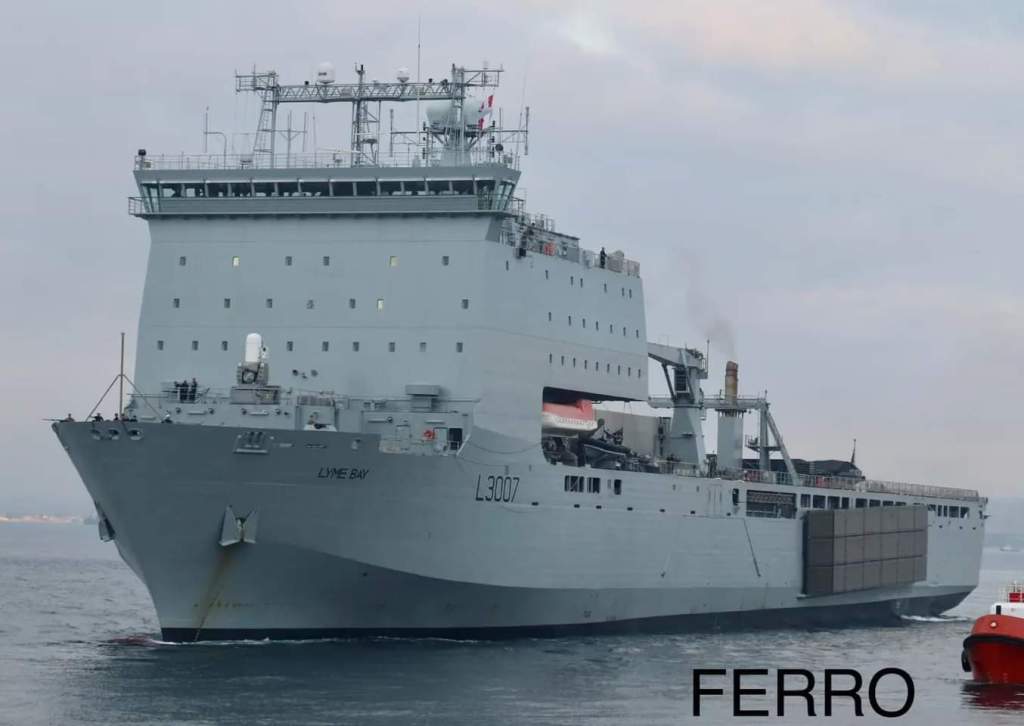 Este viernes llegó tambien el RFA Lyme Bay (L-3007), uno de los dos grandes buques anfibios del tipo LSD(A) con que cuenta la Marina Real británica (Royal Navy) y que procede, igualmente, del Puerto de Plymouth, donde se encuentra ubicada su base naval.