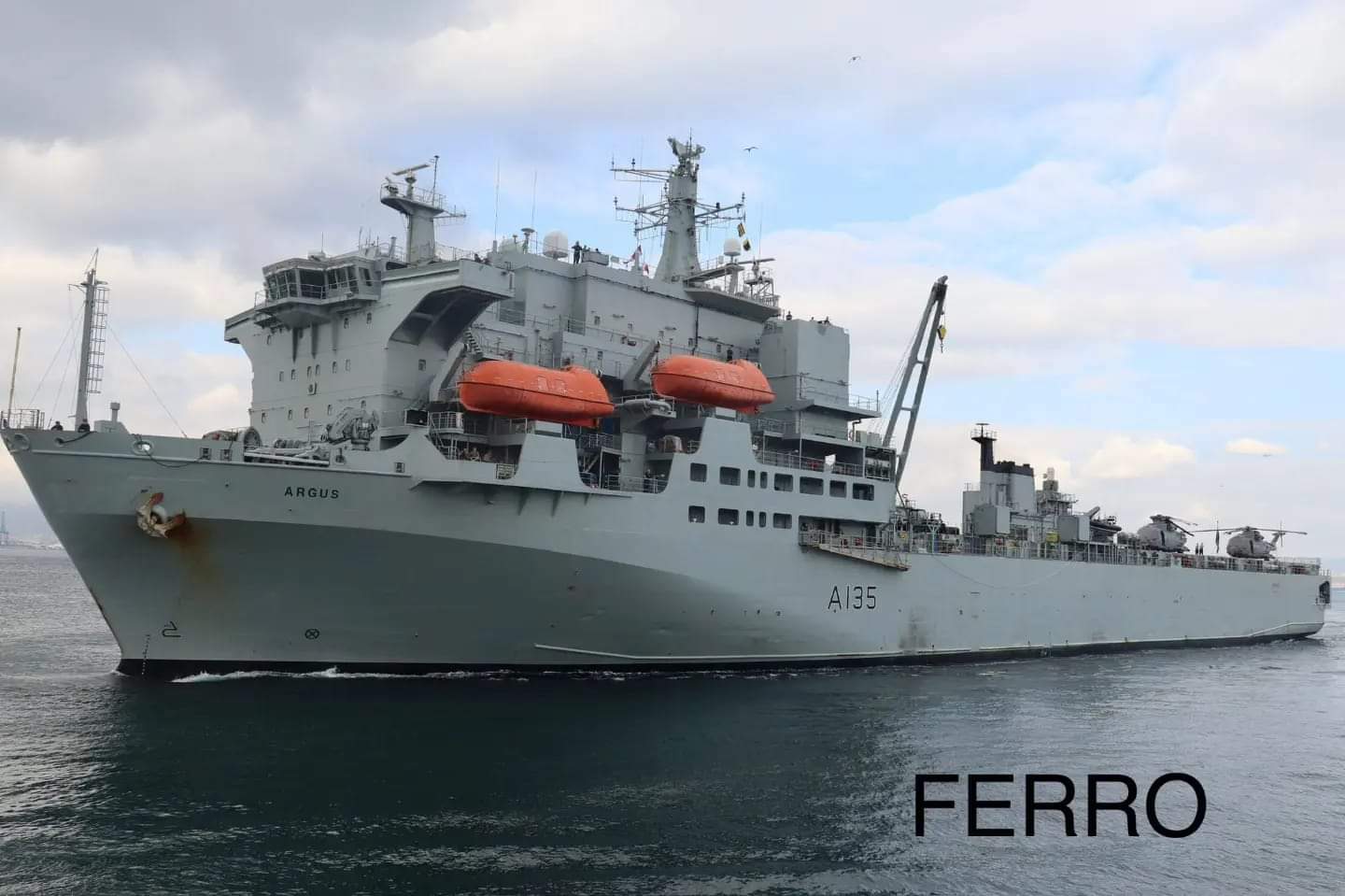 El RFA Argus (A-135) empezó su vida como un buque mercante de bandera italiana llamado Contender Bezant. Este buque fue fletado por el Ministerio de Defensa británico para llevar suministros y equipamiento para el Falklands War o la Guerra de las Malvinas de 1982. Después de la guerra, este buque fue adquirido por los británicos y convertido a barco de entrenamiento para pilotos de helicópteros. Después de la Guerra del Golfo de 1991 se le añadió el role de buque hospital y ahora es el buque líder del Grupo de Ataque Litoral. ¡No está mal para un buque de más de 40 años!