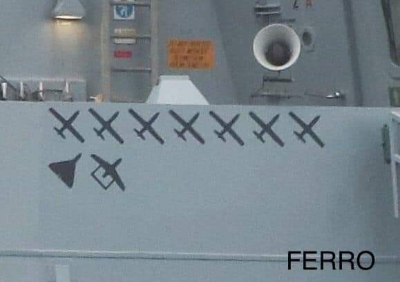 Las únicas señales que el HMS Diamond (D 37) muestra de haber participado en combate son las marcas de derribos que adornan orgullosamente el alerón de babor del puente, indicando que ha abatido con pleno éxito a nueve drones hutíes del bando yemení apoyados por Irán.