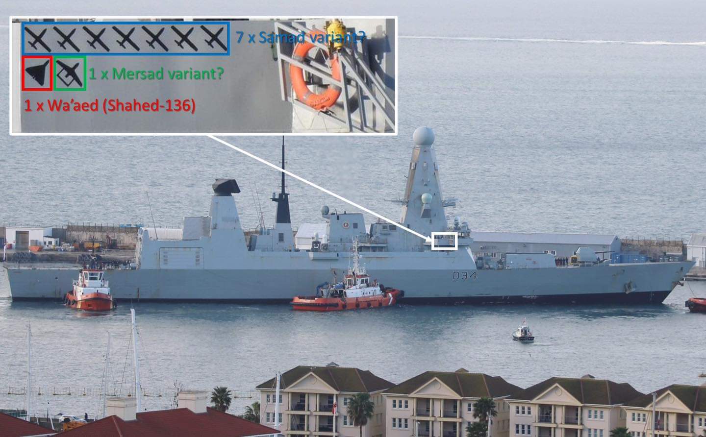 A pesar de que la prensa iraní informaba que el HMS Diamond (D 37) había sufrido daños de combate por los ataques con drones hutíes, lo cierto y verdad es que el buque británico no presenta muestras de ello, tal y como se puede comprobar en las imágenes de su llegada al Peñón y posterior atraque en el Puerto de Gibraltar que acompañan el presente artículo.
